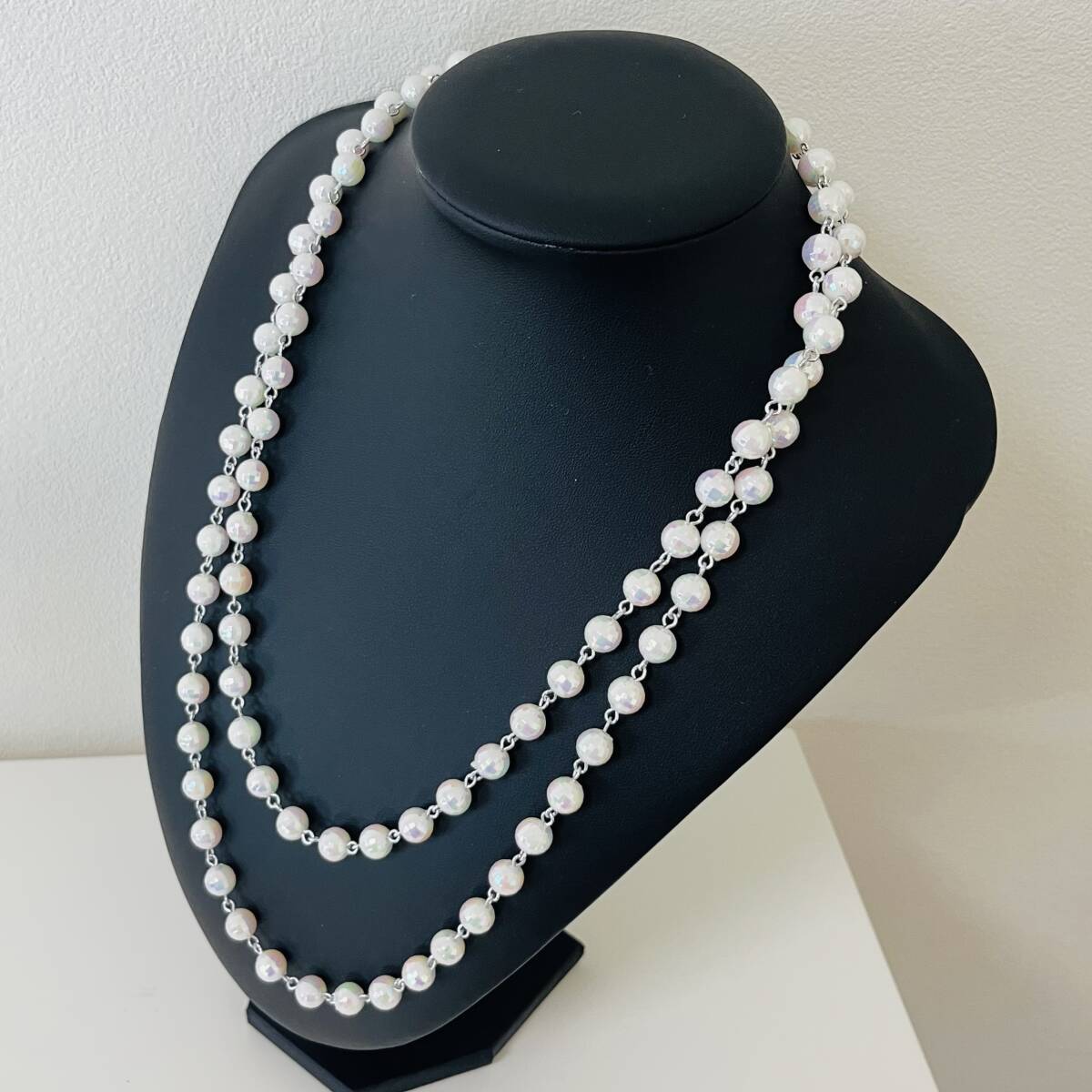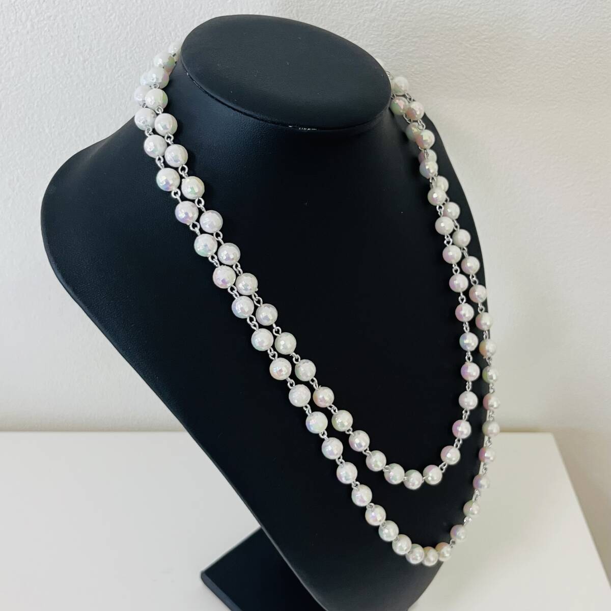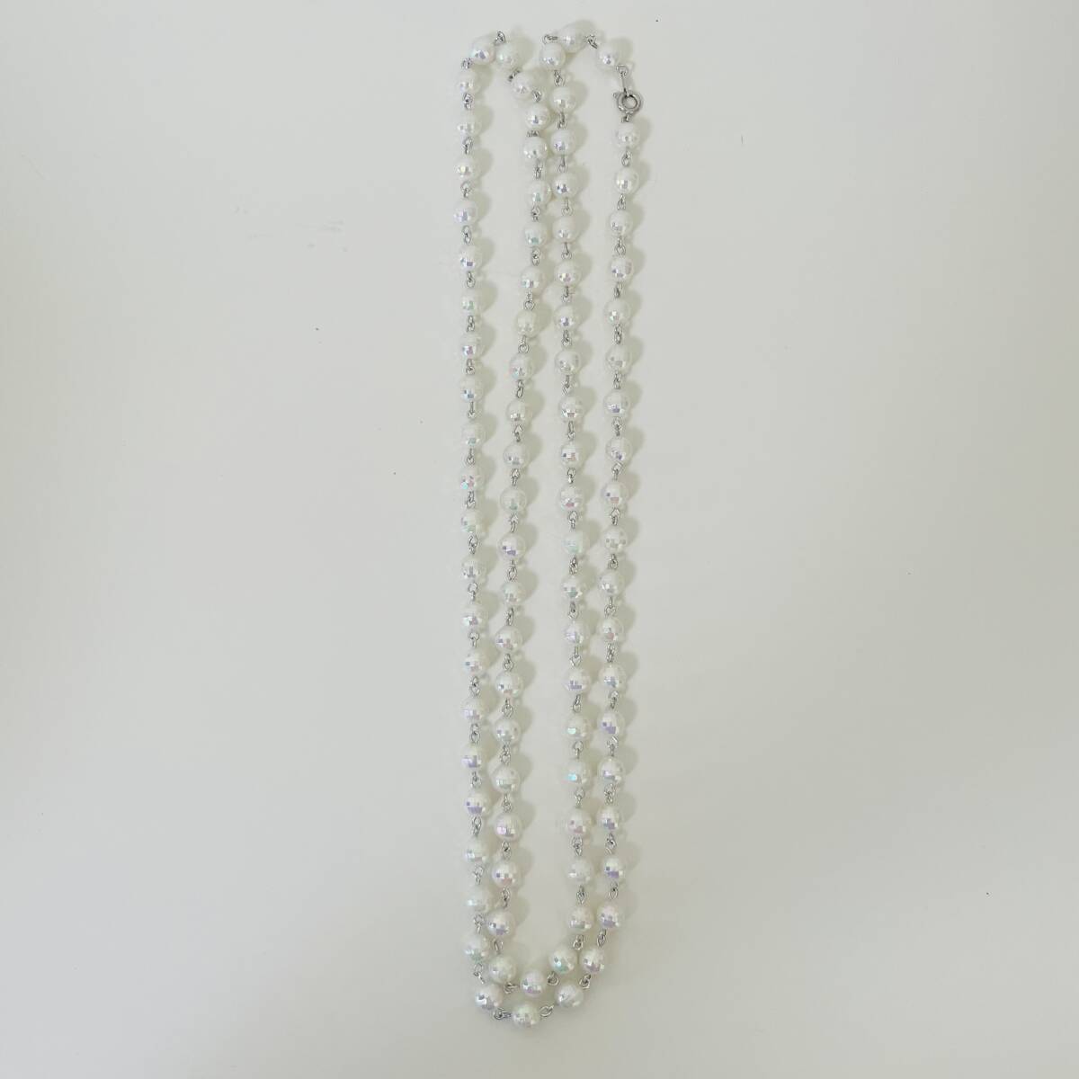 218 アンティーク ビンテージ アクセサリー ネックレス 未使用保管品!シルバーカラー 白 ロング 海外製 キラキラ