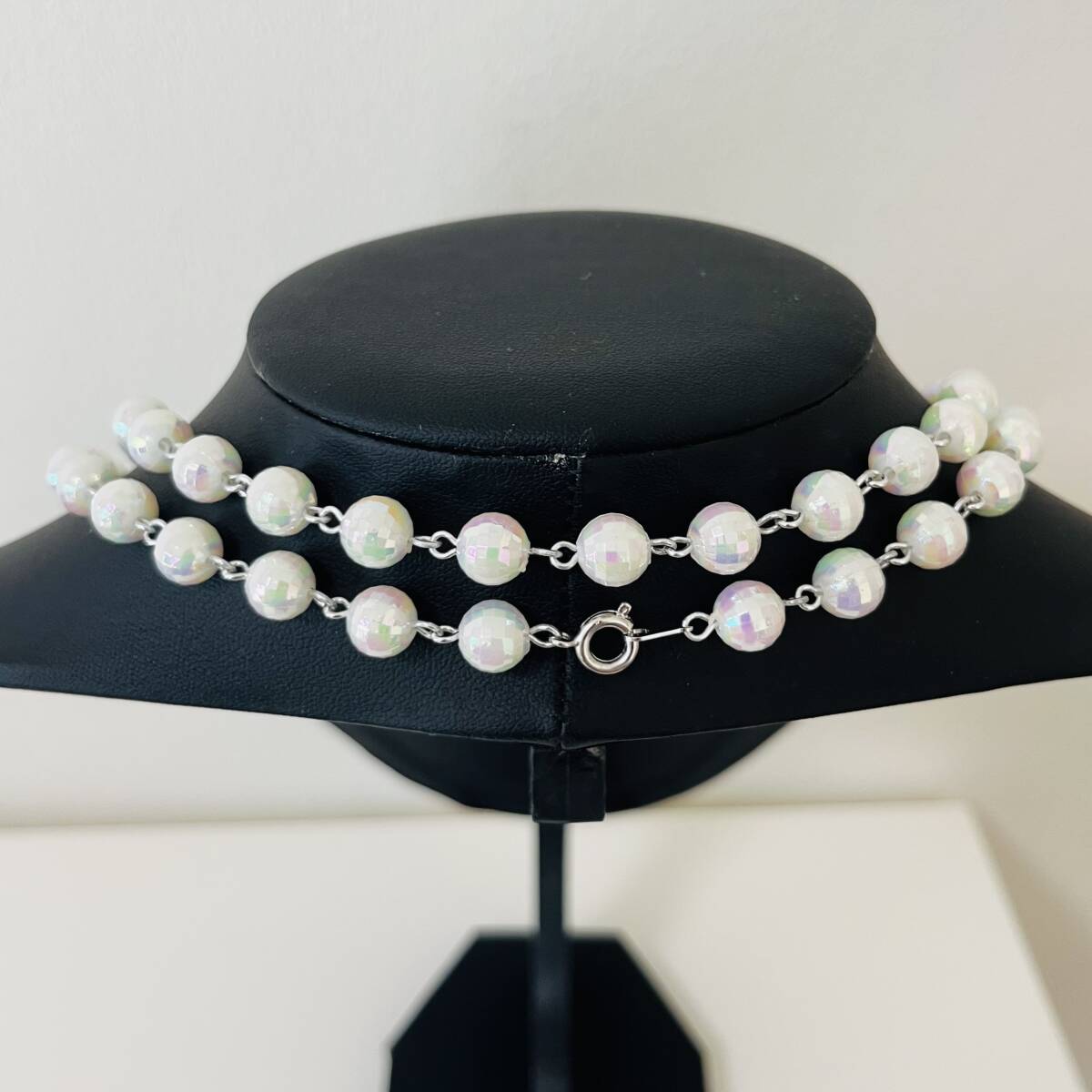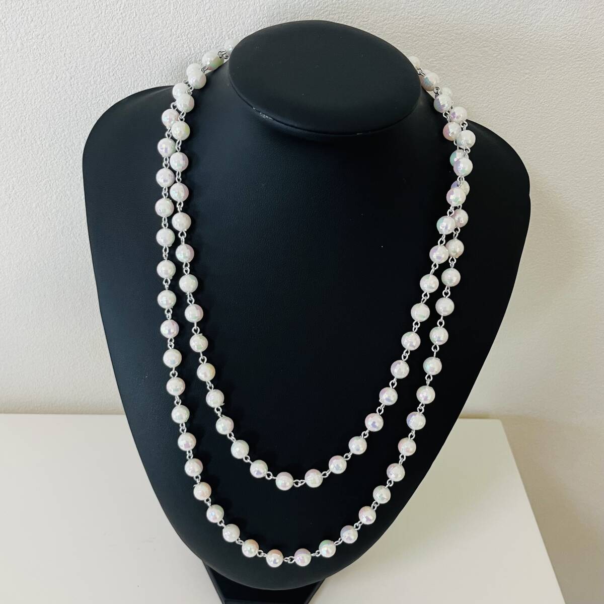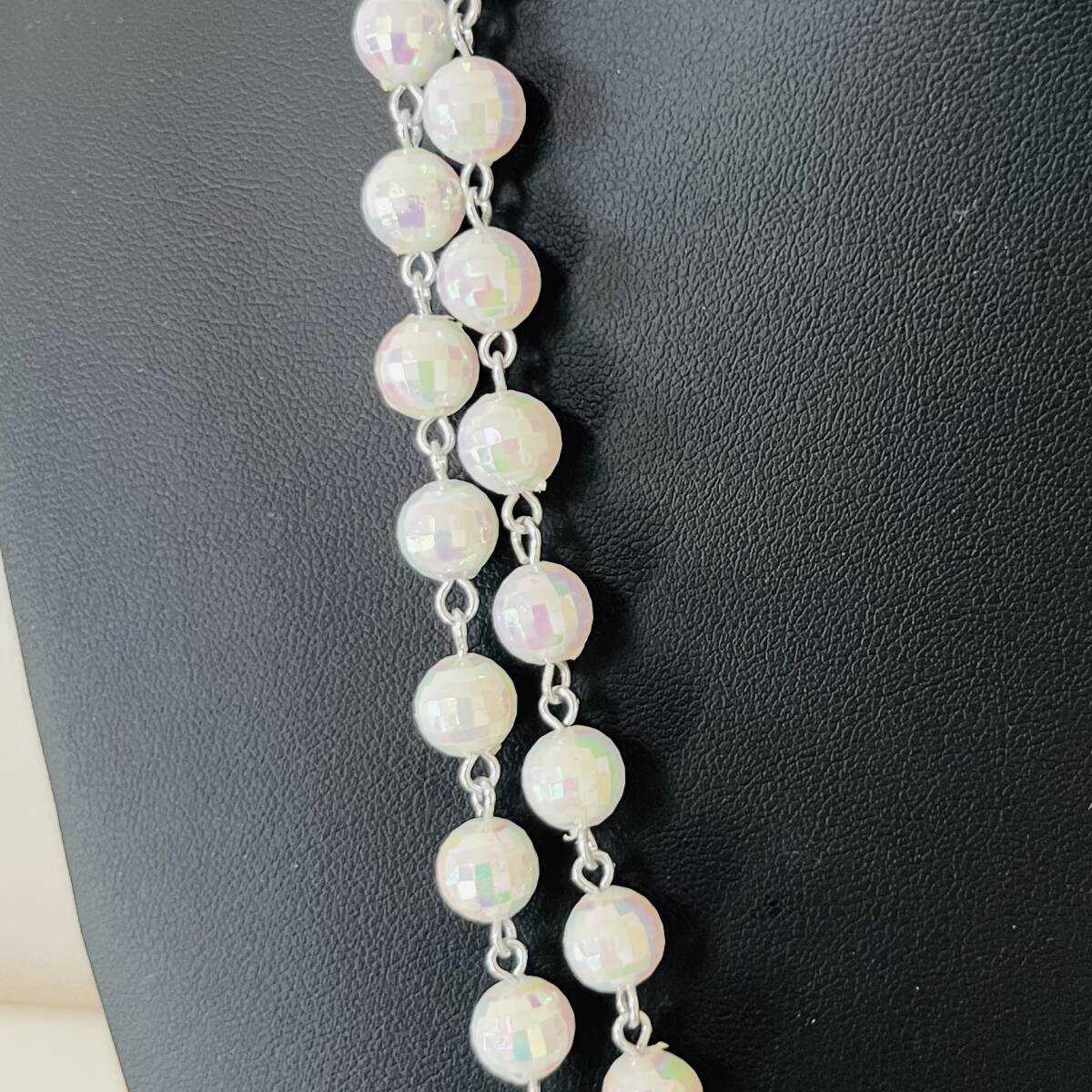 218 アンティーク ビンテージ アクセサリー ネックレス 未使用保管品!シルバーカラー 白 ロング 海外製 キラキラ