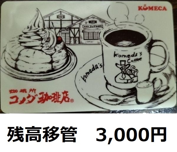 【残高移管】 コメダ珈琲 株主優待券 3000円分 ☆ コメカカード KOMECA コメダホールディングス