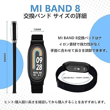 • シャオミ スマートバンド8 交換バンドの全長:220MM;調整可能な長さ:166-236MM。 miband 9 替えバンドには、個々の手首の状況に応じて調整することができます。