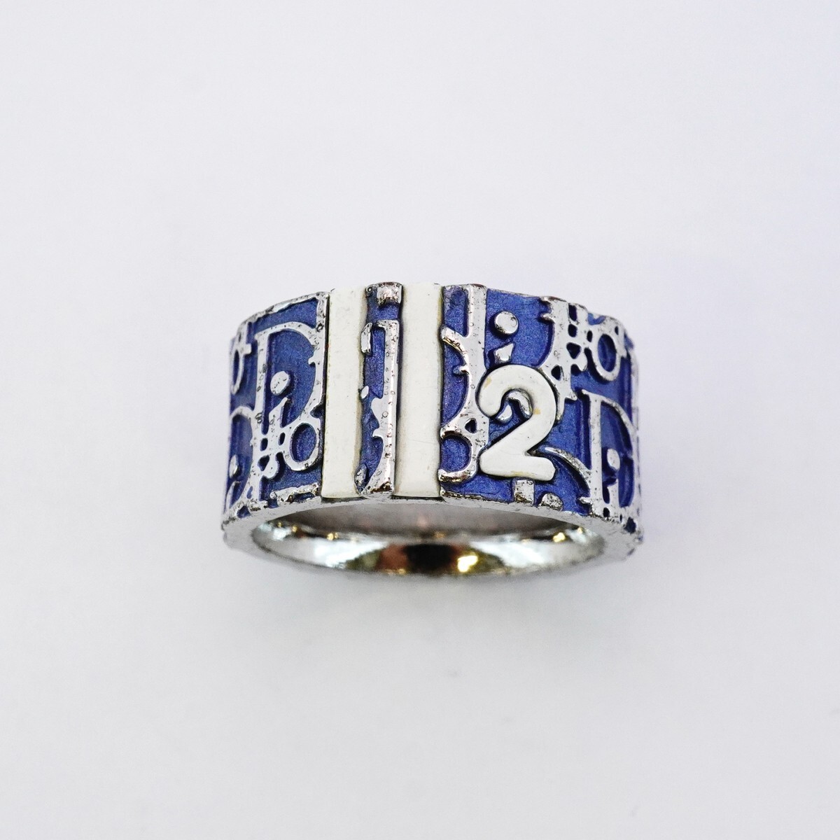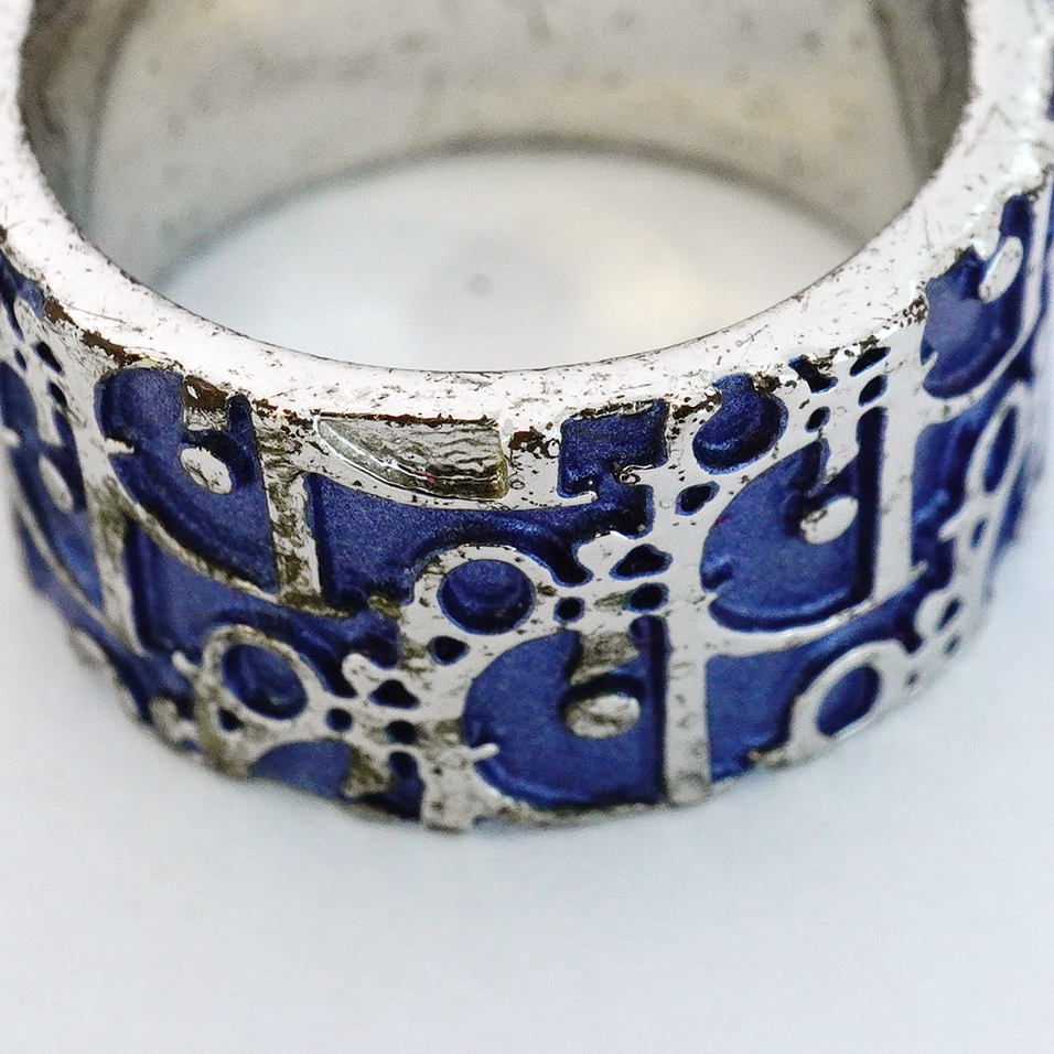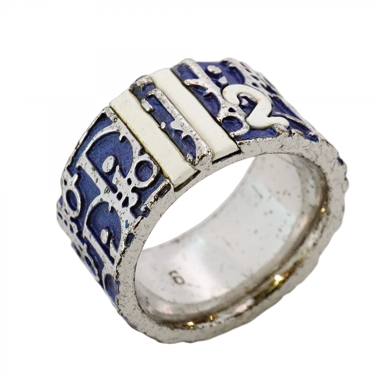 【5jgb0781】クリスチャンディオール リング トロッター メタル シルバー ブルー 12号【中古】レディース