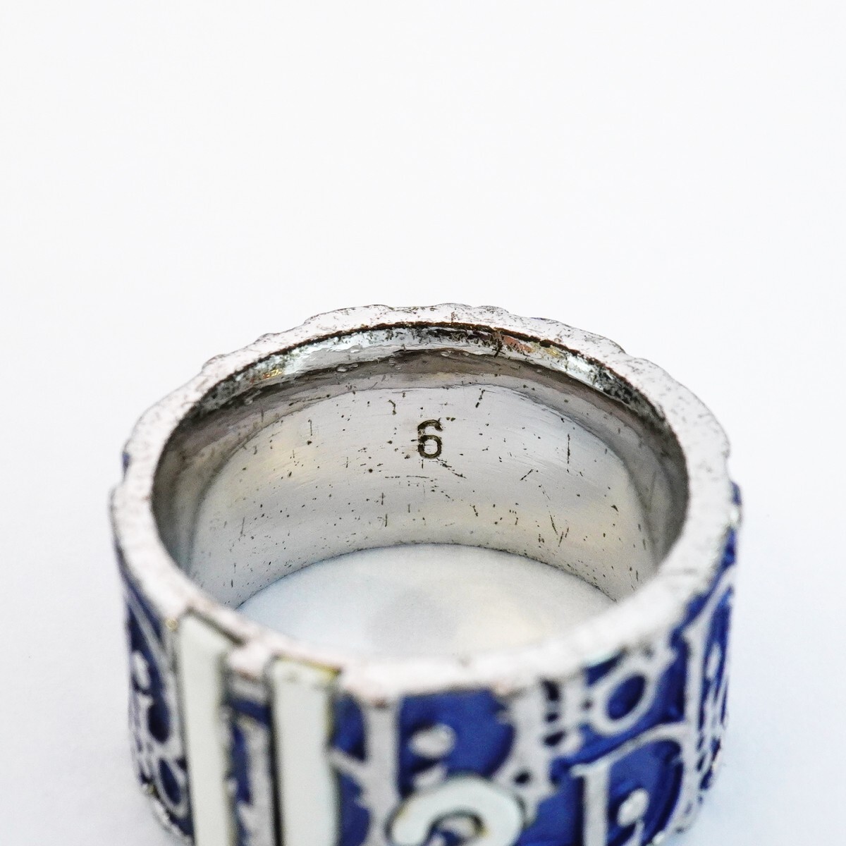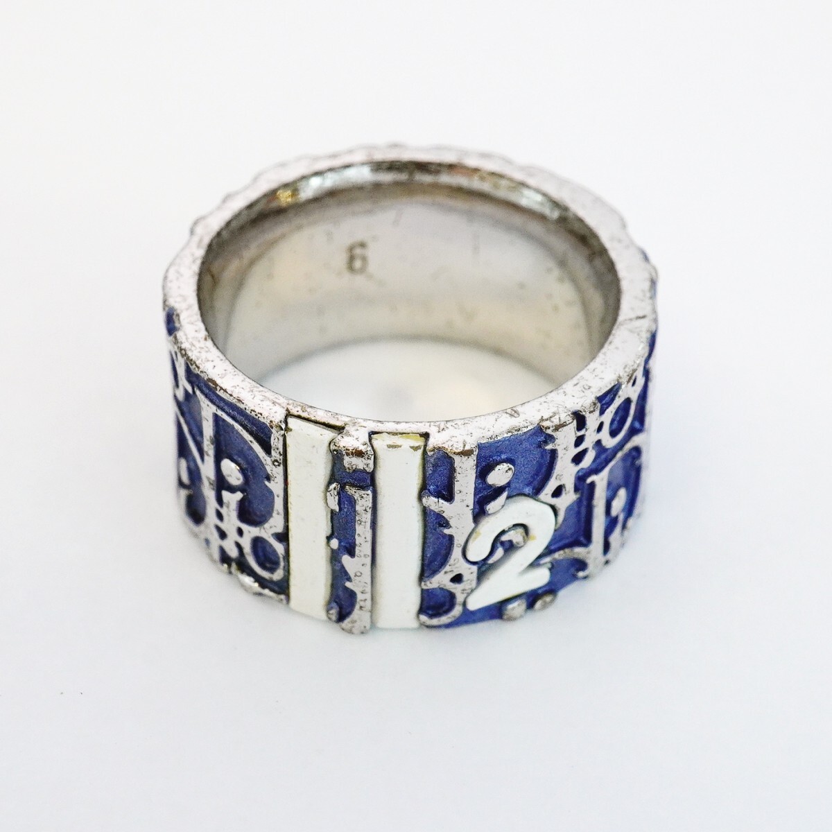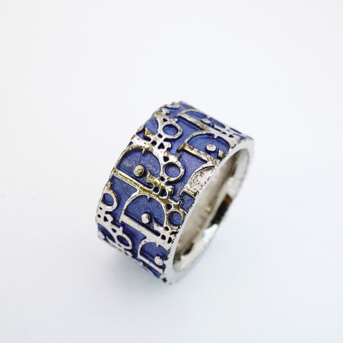 【5jgb0781】クリスチャンディオール リング トロッター メタル シルバー ブルー 12号【中古】レディース