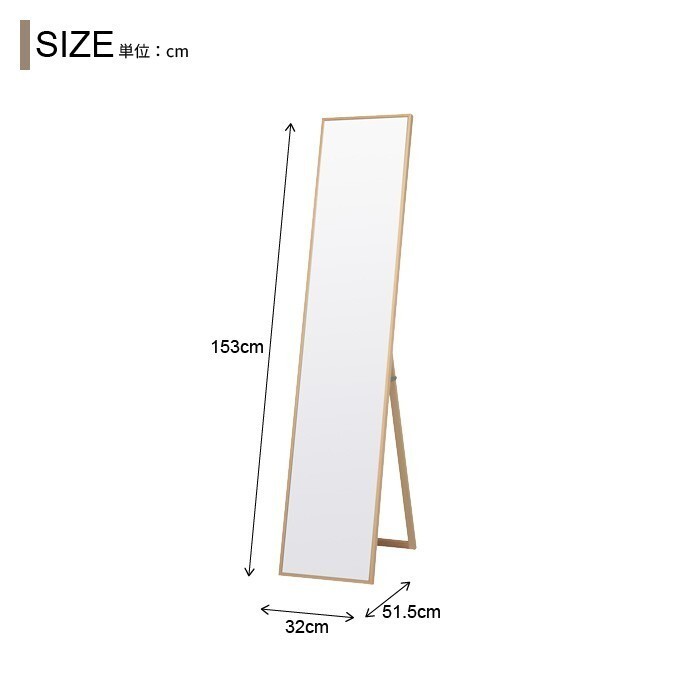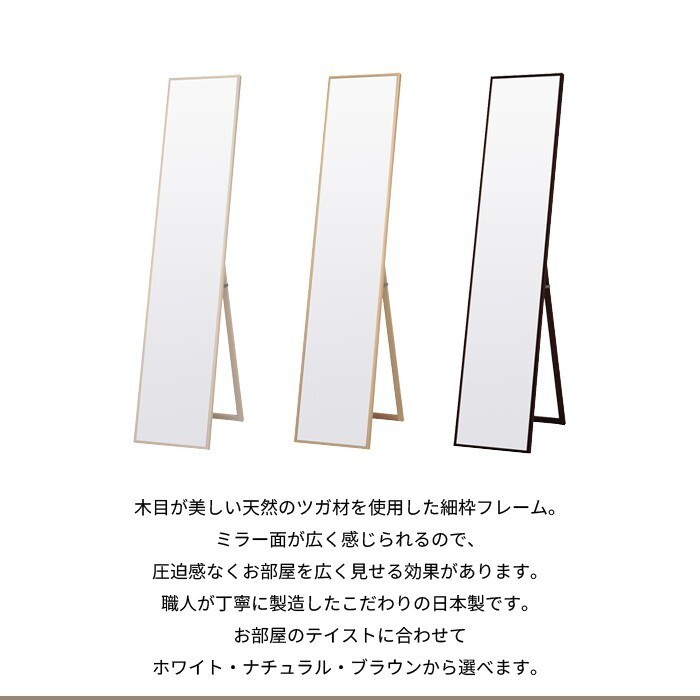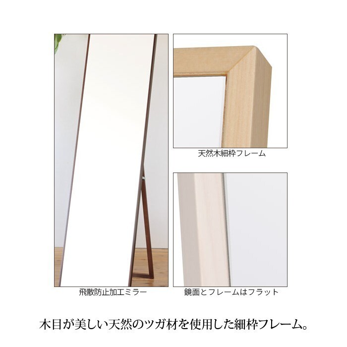 | 商品説明 | 職人が丁寧に製造したこだわりの日本製。 【仕様】 ■サイズ:約幅32×奥行38~51.5×高さ153cm ■重量:約5.1kg ■材質:天然木、ミラー(3mm厚) ■塗装:ウレタン塗装 ■カラー:ホワイト、ナチュラル、ブラウン ■機能:天然木細枠フレーム、飛散防止加工ミラー、折りたたみ可能 ■生産国:日本 ■組立区分:完成品 |