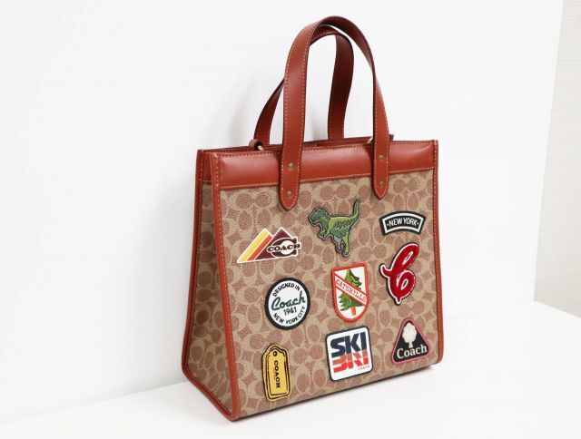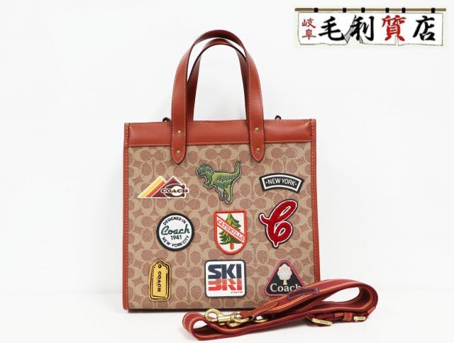| コーチ COACH フィールドトート シグネチャー PVC×レザー ウィズパッチ C6846 トート レディース【中古】バッグ |