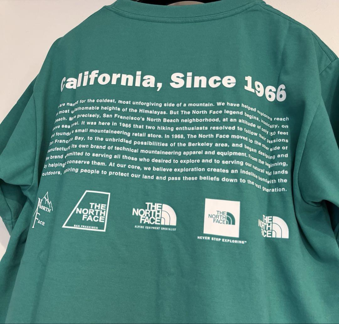 肌触りのよいコットンと、速乾性を持つポリエステルを使用した、柔らかくしなやかな肌触りのニット生地の Tシャツ。 THE NORTH FACEの歴代のロゴを年代順に並べ、ブランドの歴史を記しています。