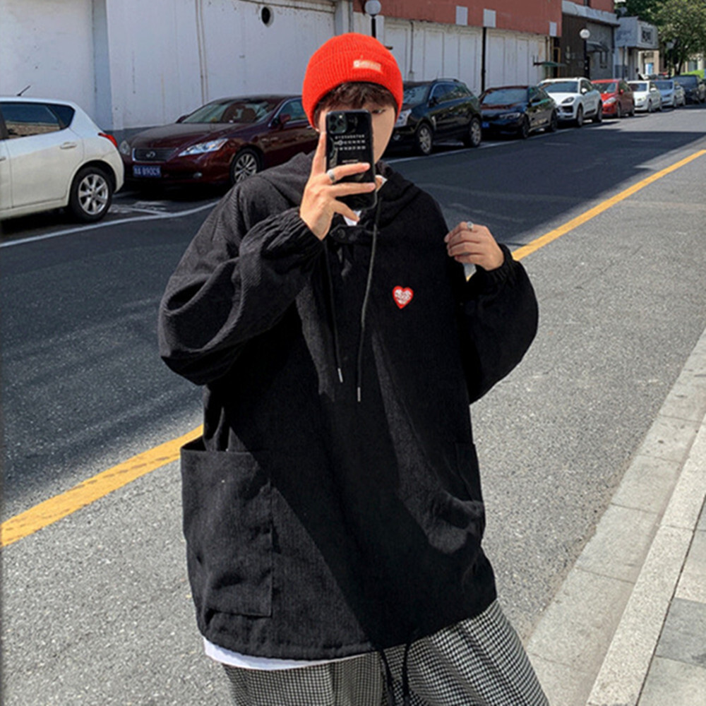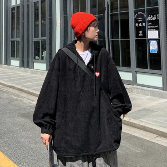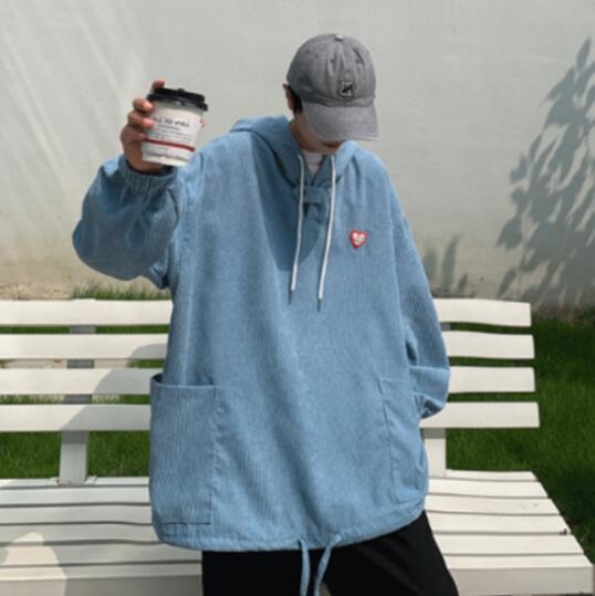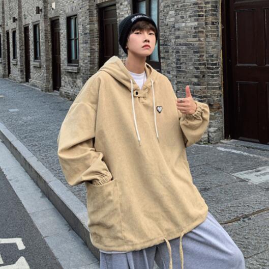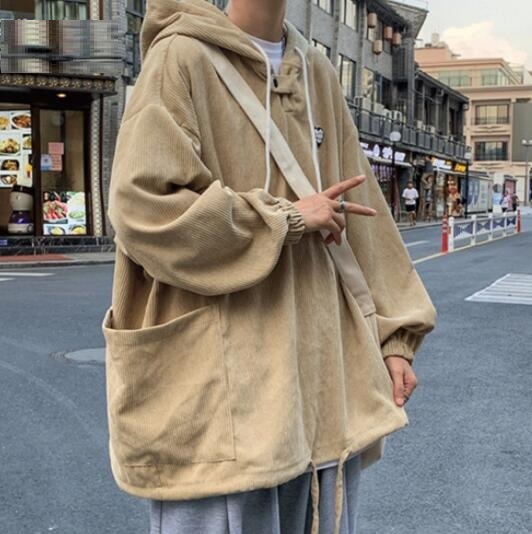 新品メンズ パーカー アウター トップス 無地 コーデュロイ 大きいサイズ フード付き 韓国風 長袖 春秋 ゆったり カジュアル (5色S-3XL)