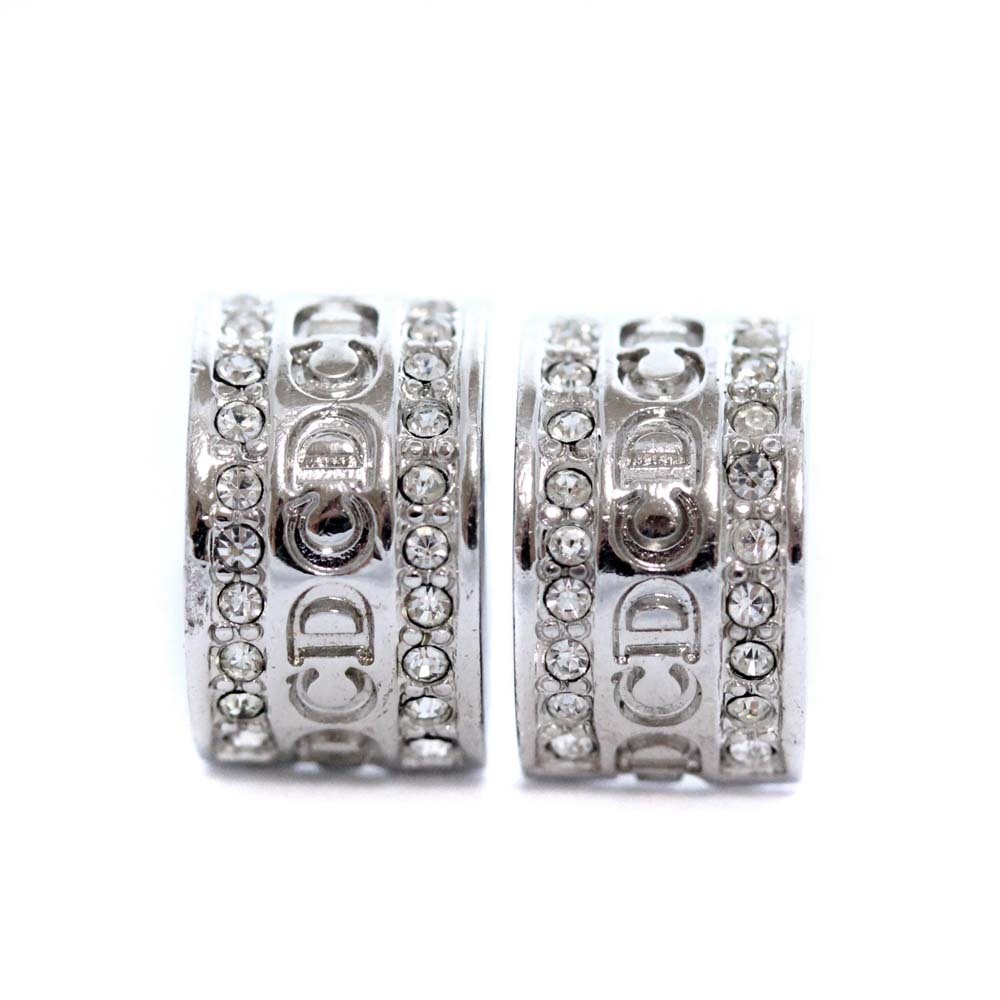 クリスチャンディオール ラインストーン ロゴ イヤリング レディース メタル アクセサリー シルバー 中古 Christian Dior
