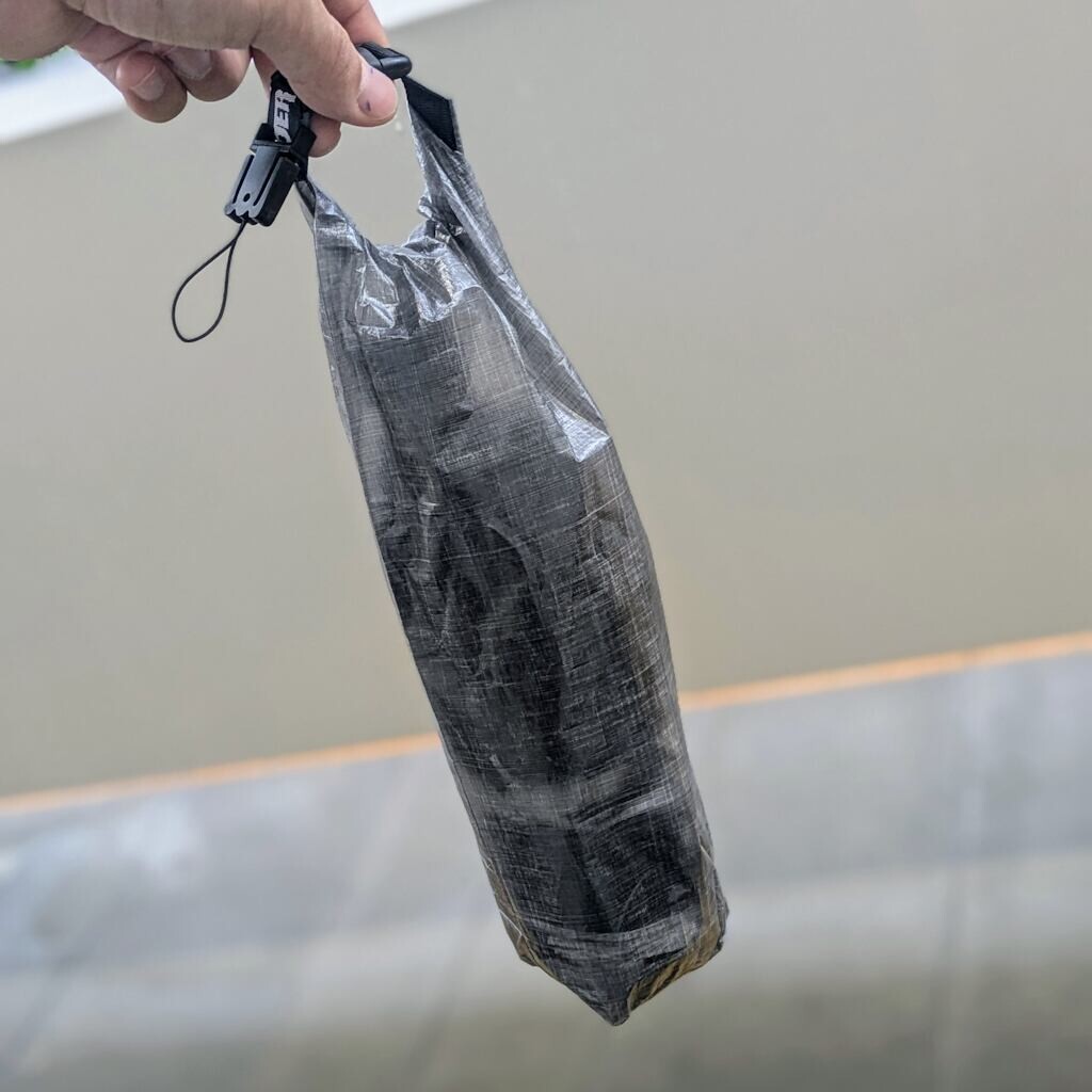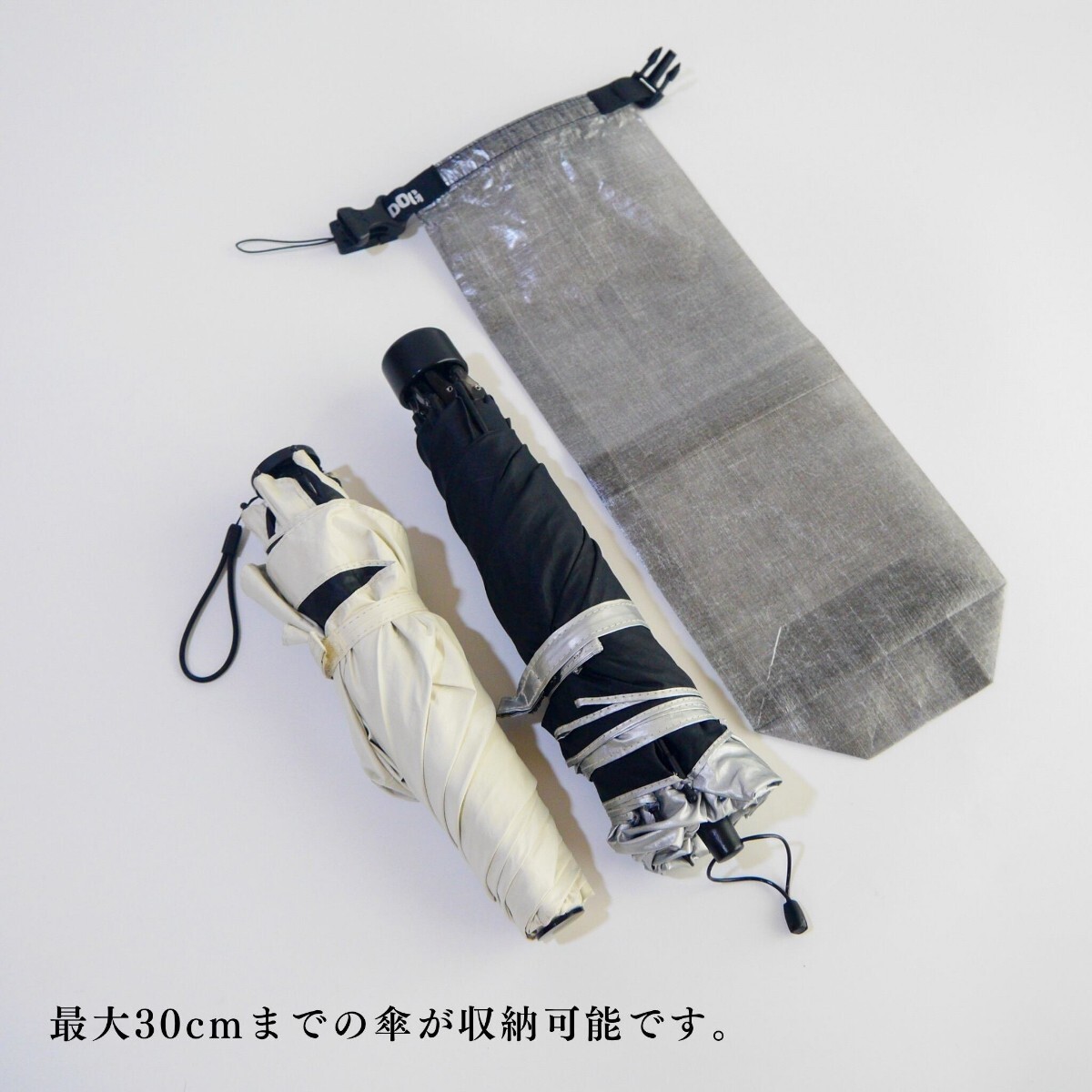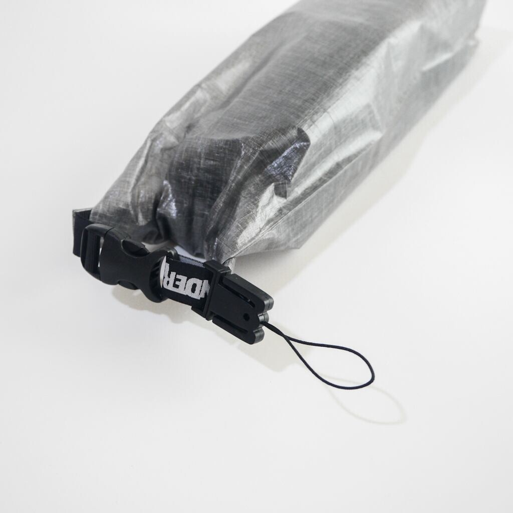 UL系の折りたたみ傘を想定して設計されたこの傘ケースは、防水性に優れたDCF(Dyneema Composite Fabric)素材を使用し、濡れた傘を他の荷物としっかり分けて収納可能。今回、横幅を2cm広げたことで、よりスムーズに傘を収納できるようになりました(画像9枚目)。