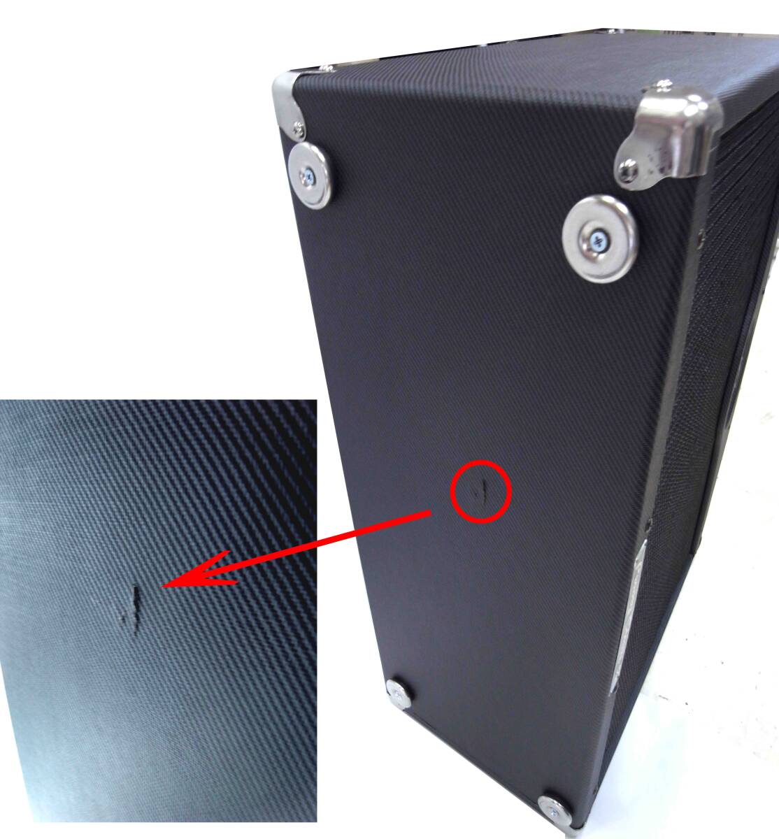 検品ではサランに軽い擦れ、本体底面にレーザー傷ありました。