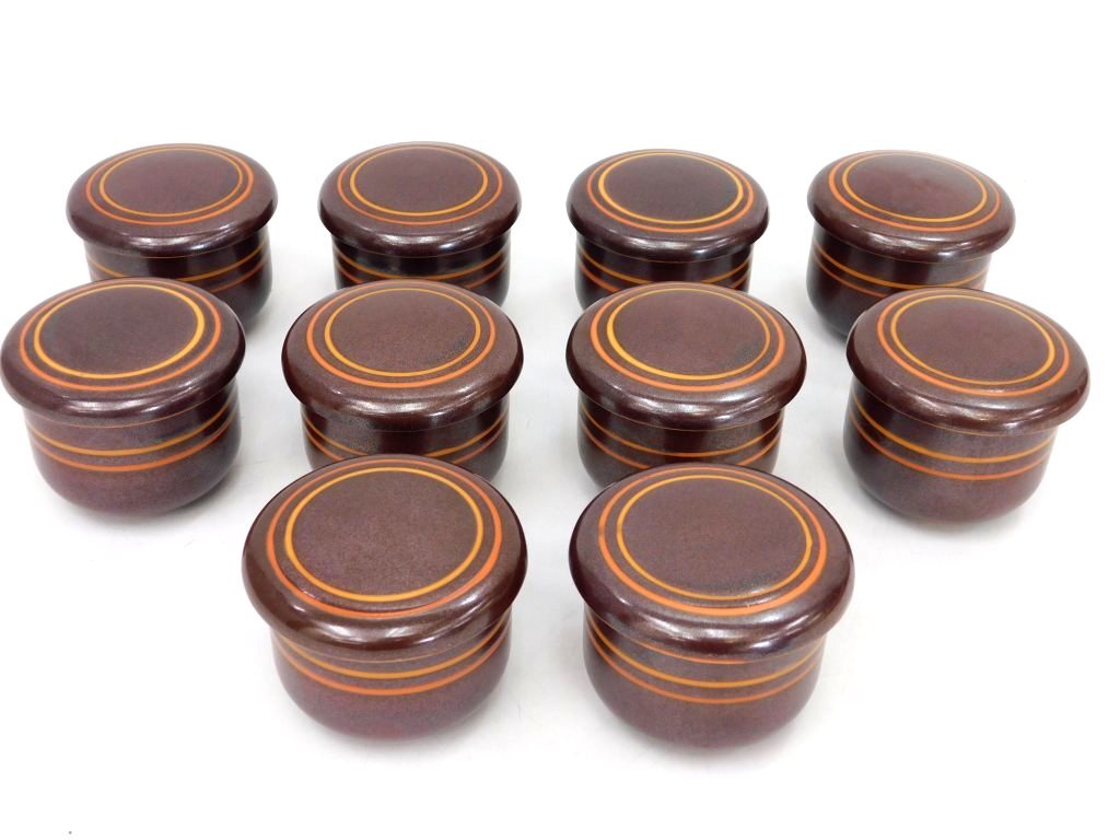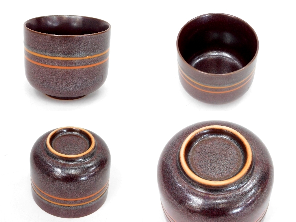 | 詳細 サイズ(実寸・約) 蓋 径9.5×高さ7.6cm 口径:8.8cm 底径:4.8cm 陶器製 昭和レトロモダン風の茶碗蒸碗です。 和会食にどうぞ。 ※その他画像参照下さい。 ※梱包には、再生ダンボールを使用しております。ご了承くださいませ。 ※送料表をご確認の上、入札のご検討をお願い致します。 |