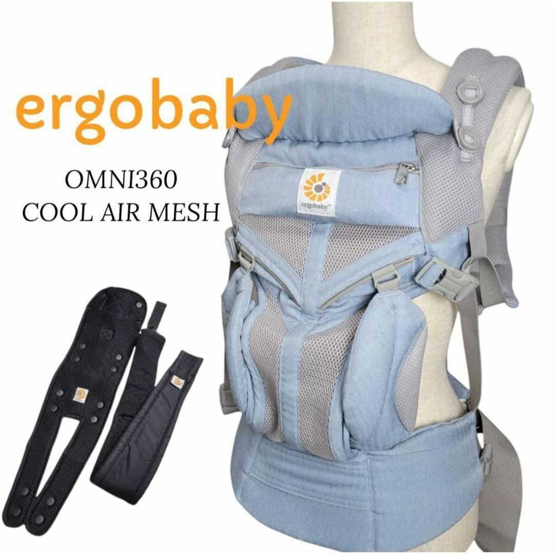 エルゴベビー ergobaby オムニ360 クールエア メッシュ シャンブレー 抱っこ紐 美品 正規品 新生児 前向き おんぶ 涼しい 夏用 セーフティストラップ 落下防止ベルト