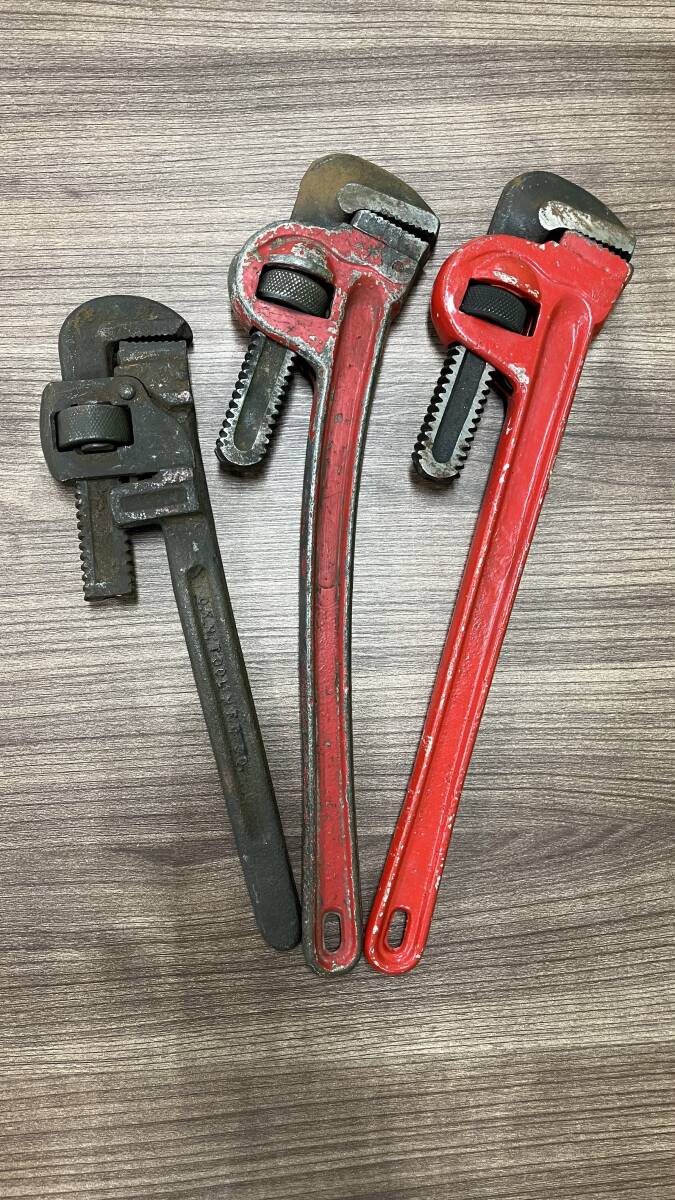 パイプレンチ 3本 セット まとめ 1本約33cm 2本約40cm 赤 錆 工具 長期保管品 現状品 F1712