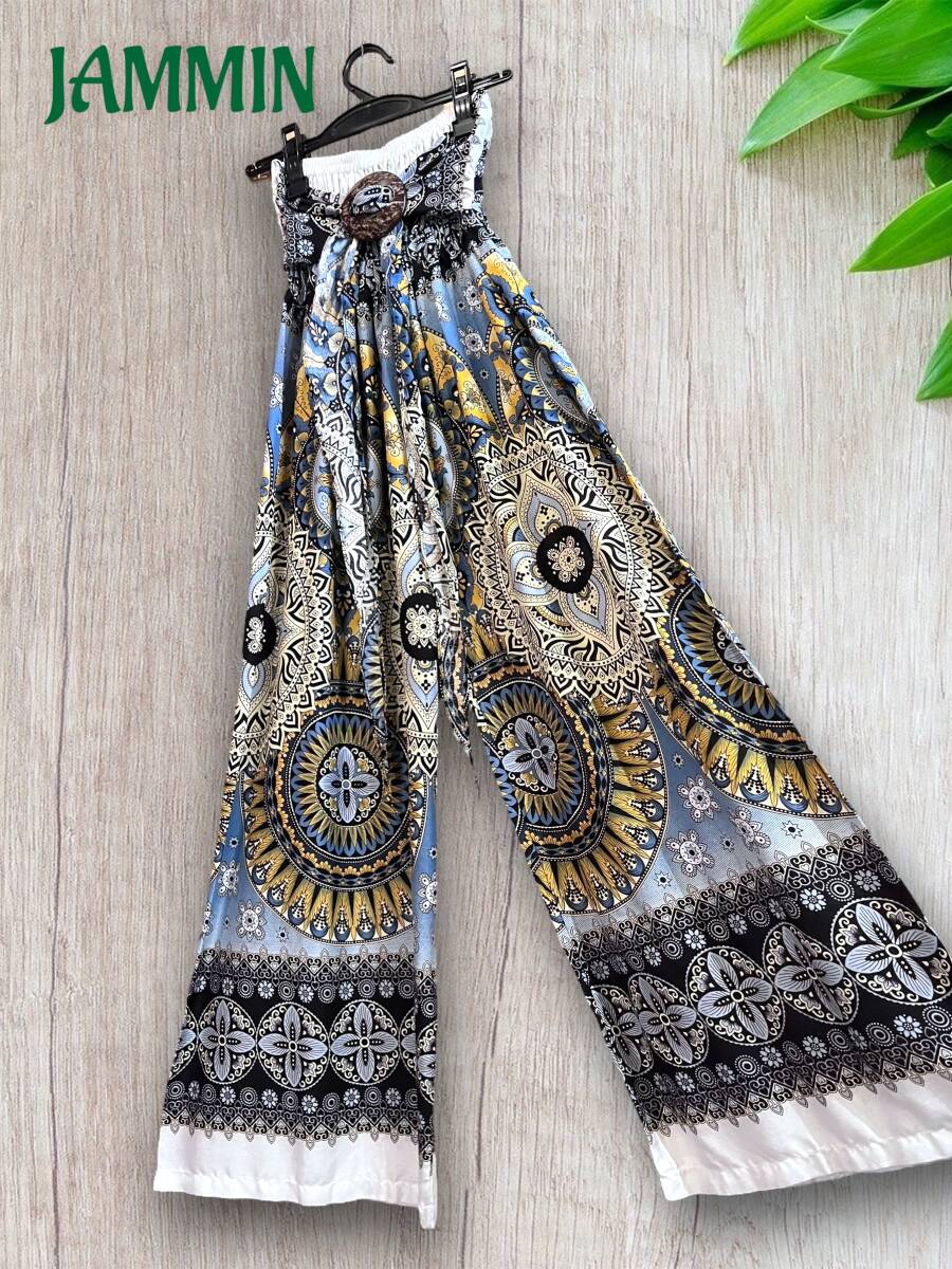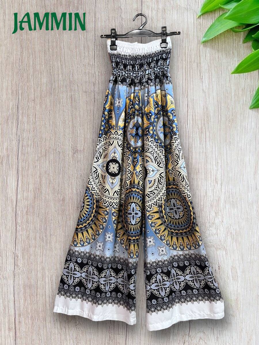 アジアン花紋様柄パンツ アジアン エスニック ヒッピー ワイドパンツ