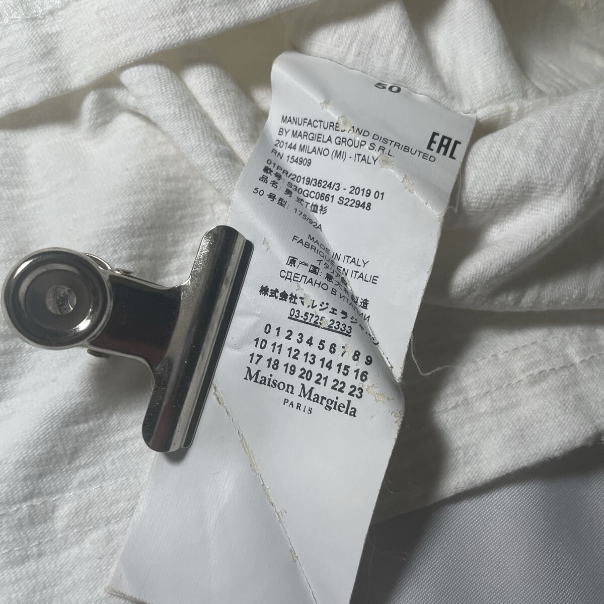襟元付近等にデストロイ加工(ダメージ加工)や、インサイドアウトのディテールがあしらわれており、マルジェラらしいデザインが多く施されているモデルになります。