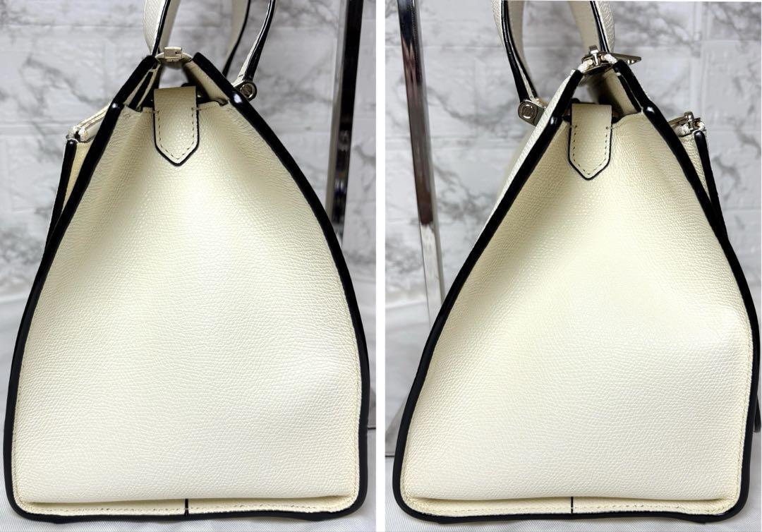自宅保管とはなりますが、新品に近い状態です^ ^持ち手の付け根にレザーのカサつきと、底鋲カバーが一つ欠品しています。