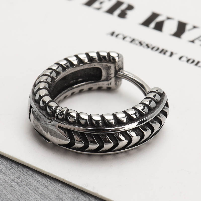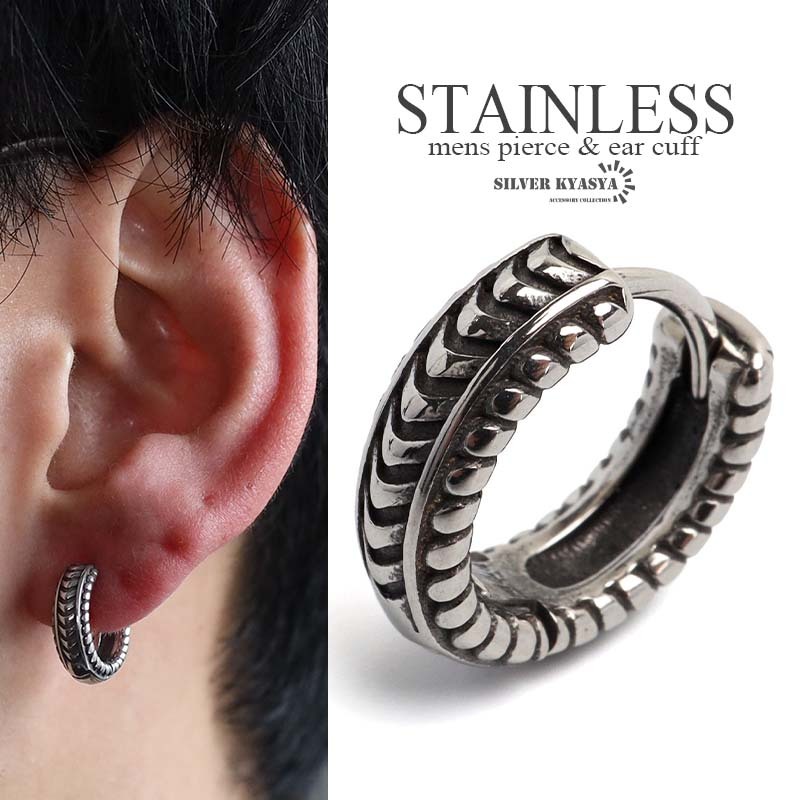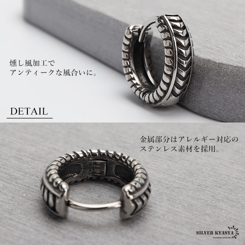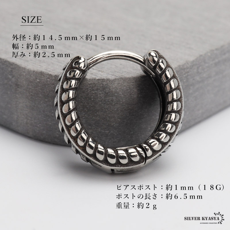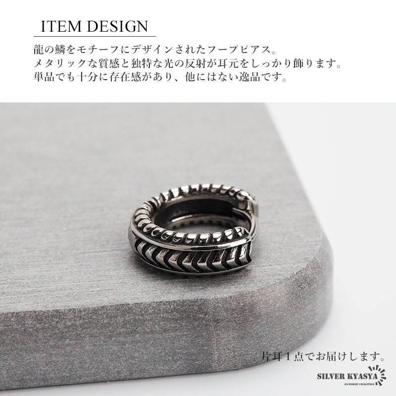 ステンレス製 龍の鱗 ピアス フープピアス ドラゴンピアス シルバー 幾何学模様 ユニーク 片耳1点 プチプラ メンズ 金アレ対応