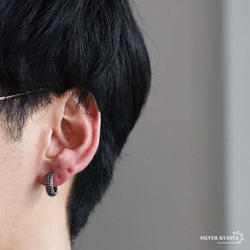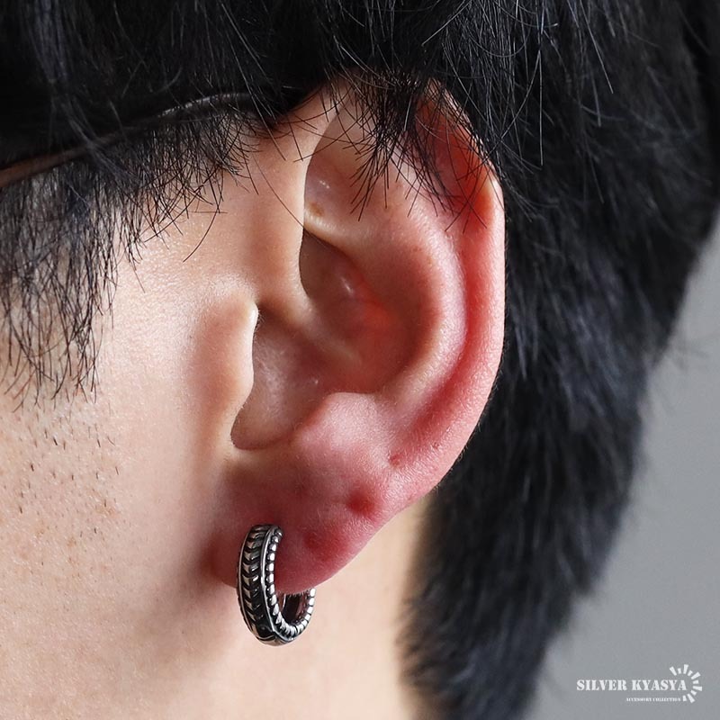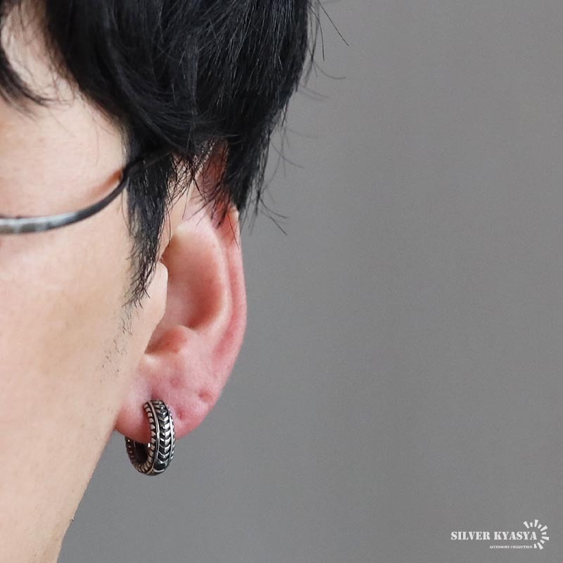 龍の鱗をモチーフにデザインされたフープピアス。メタリックな質感と独特な光の反射が耳元をしっかり飾ります。単品でも十分に存在感があり、他にはない逸品です。