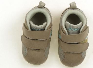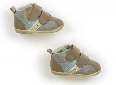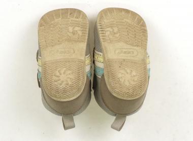 マジックテープ留め。実際のサイズ表記は12cm。全体に擦れ感とソール全体に薄汚れが見受けられます。普段使いにいかがでしょうか。