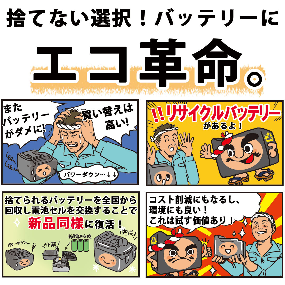 詳しくは専用ページをご覧ください。→バッテリーの無償引取について
