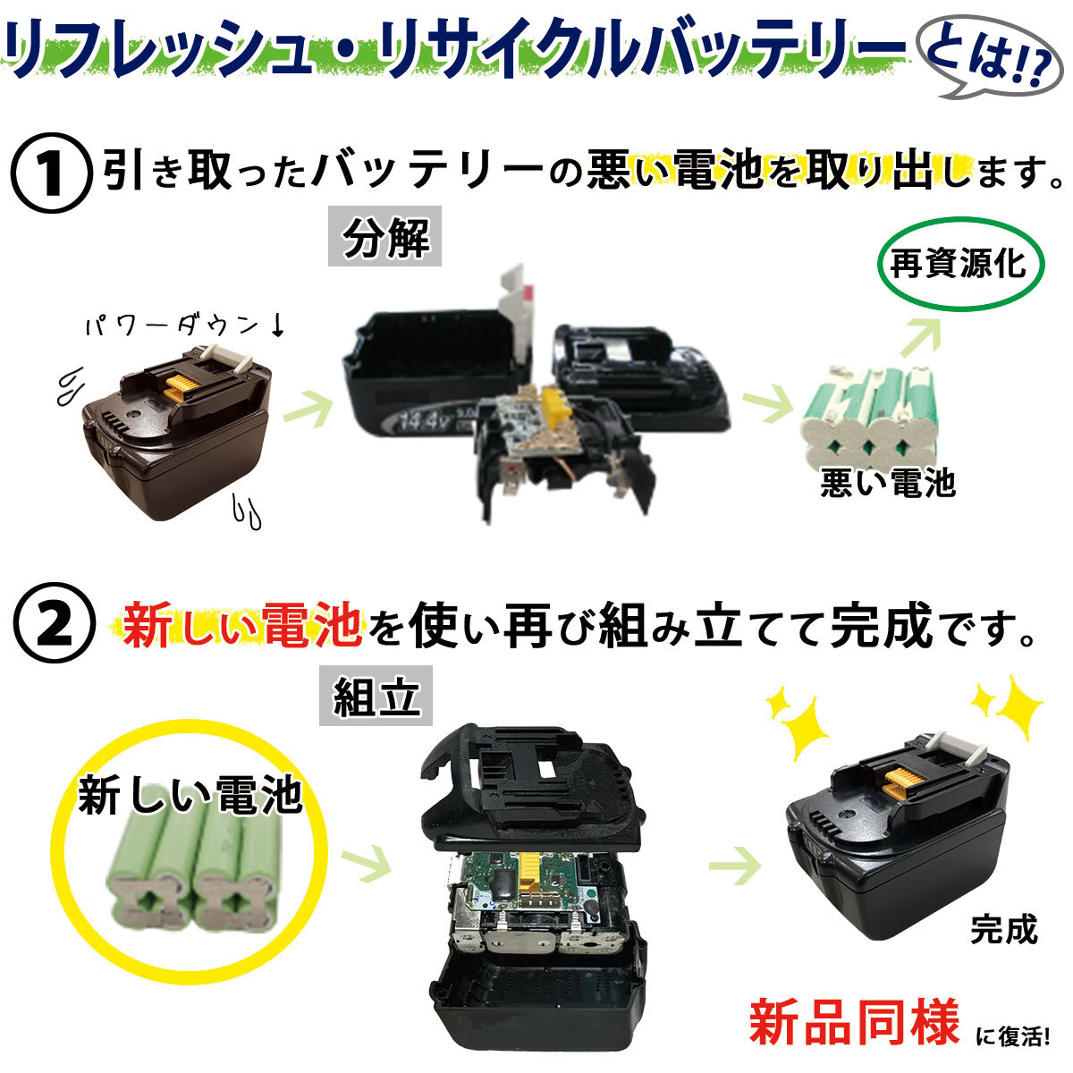 ●同型バッテリーをリフレッシュ・リサイクルして出荷する場合がございます。スペックに変更はありませんので問題なくご使用頂きます。