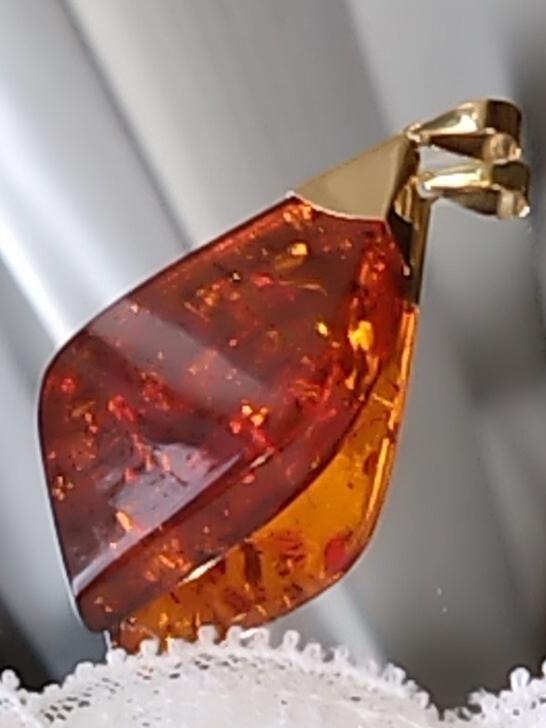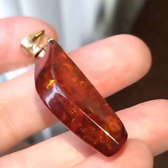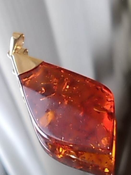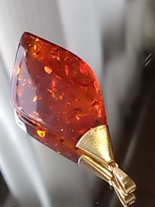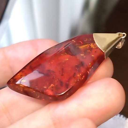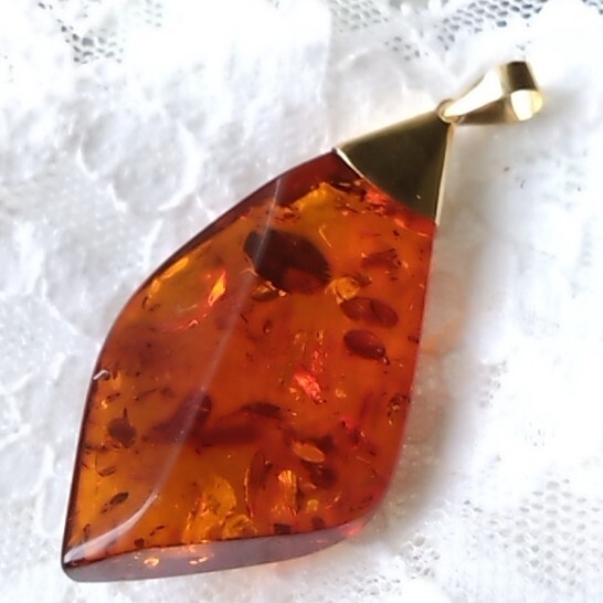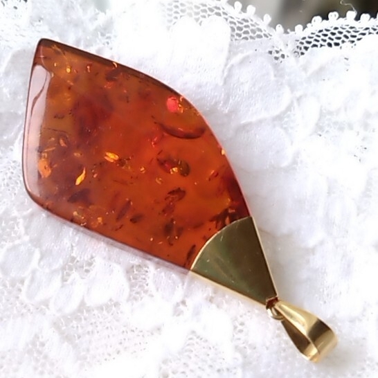 グリッターも美しいティーブラウンカラーの天然琥珀を使用したペンダントトップです。