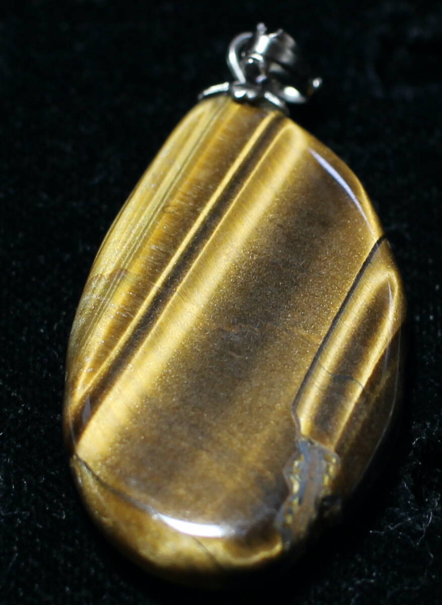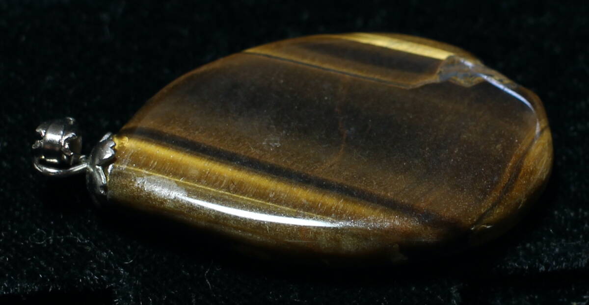 虎目石は同一方向に並んだ針状の内包物が虹彩効果を生みこの光の帯が虎の目のように見えることから名付けれました。