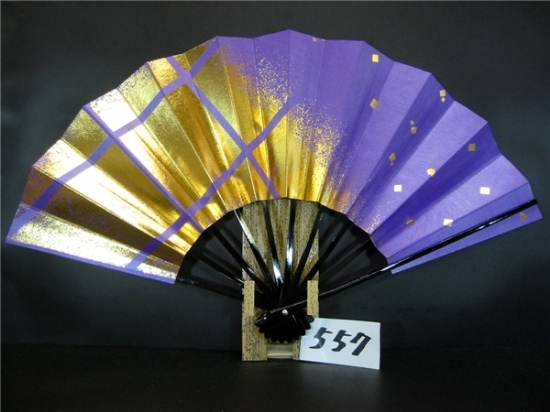 舞扇子 A557 金箔格子模様 紫べたシルバー引き 【箱なし】