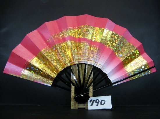 舞扇子 A790 金ホロかすみ 赤天ぼかしシルバー引き 【箱なし】