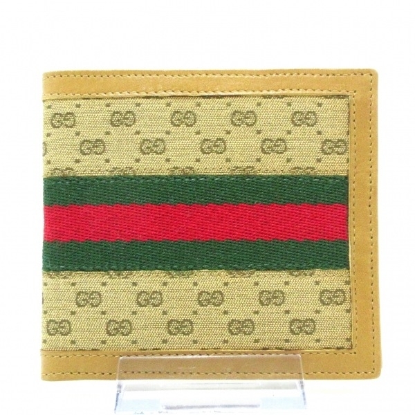 グッチ GUCCI 札入れ - レザー ライトブラウン×ダークブラウン×マルチ オールドグッチ 財布