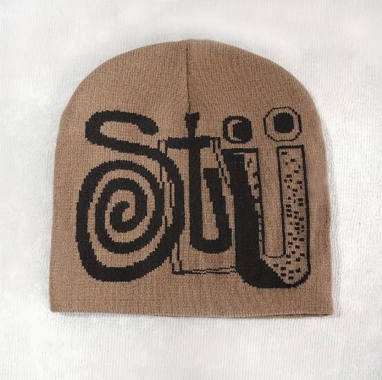 送料無料【新品】ステューシービーニー帽 濃ベージュ 男女フリーサイズ STUSSY「STU」ロゴ編込み変形フォントが素敵/ニットキャップ帽子