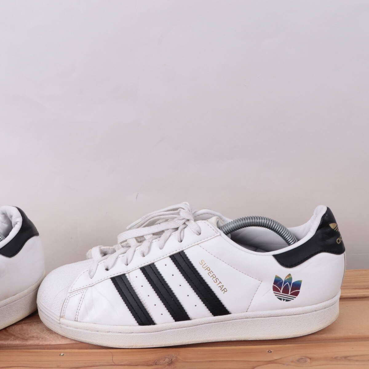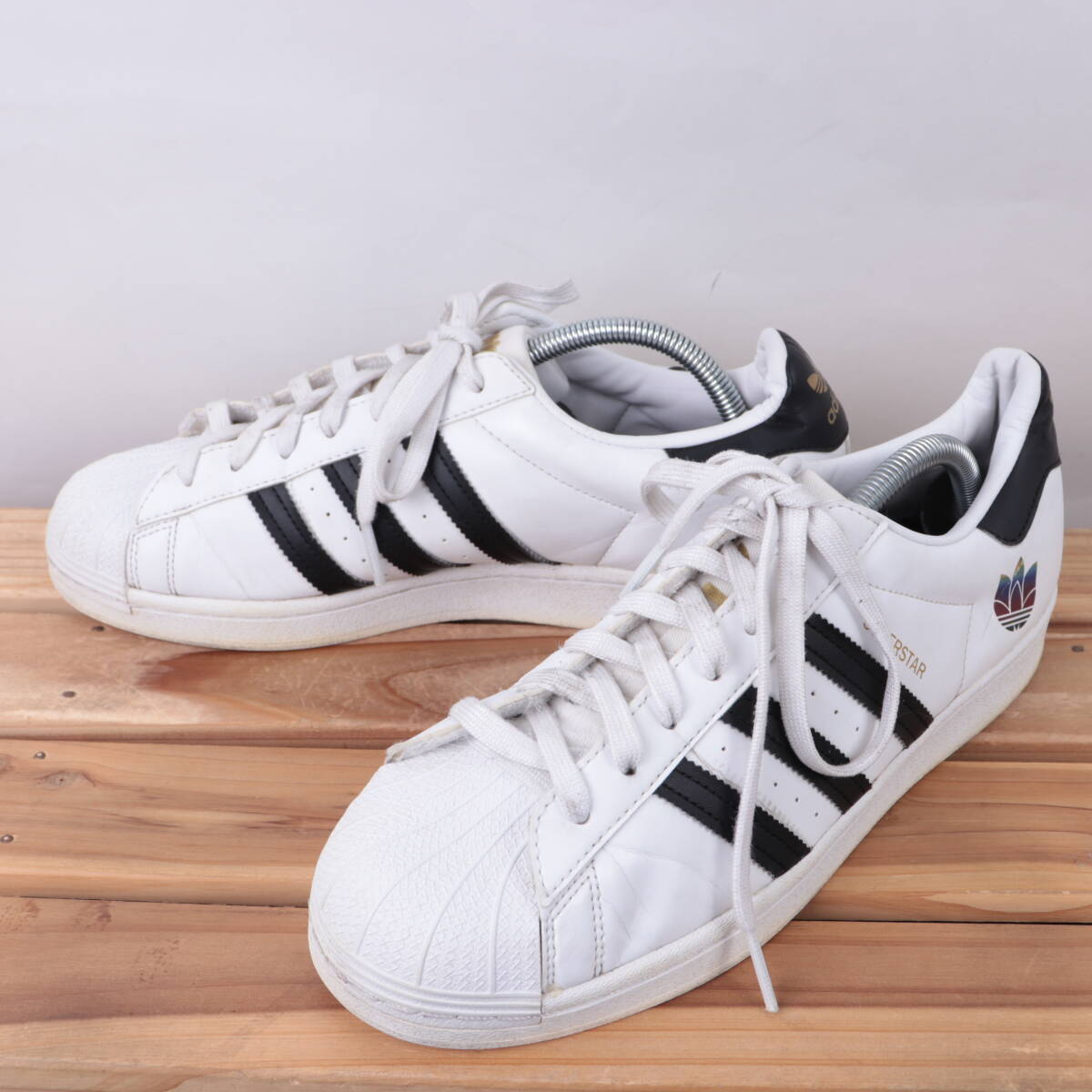 z8374 アディダス スーパースター US10 1/2 27.5cm/白 ホワイト 黒 adidas SUPERSTAR レディース スニーカー 中古