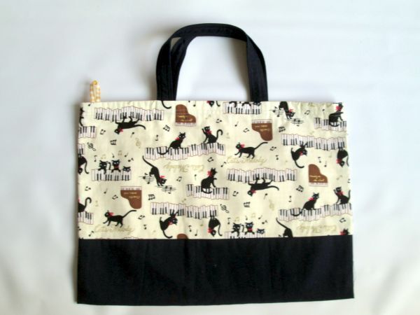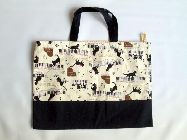 品名:手作りの黒猫柄のスクールバッグです その他:全部うら付きで内ポケットもあります。