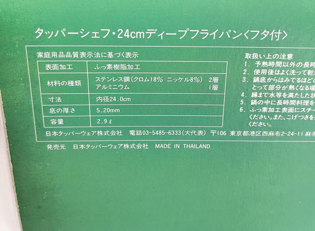 タッパーウェア「タッパ―シェフ 24cmディープフライパン フタ付」