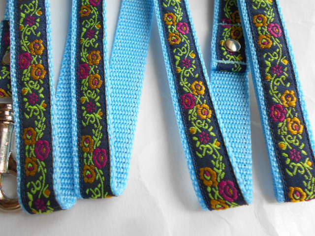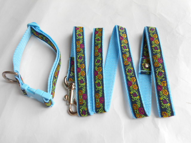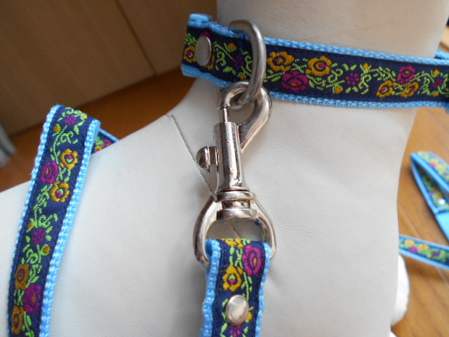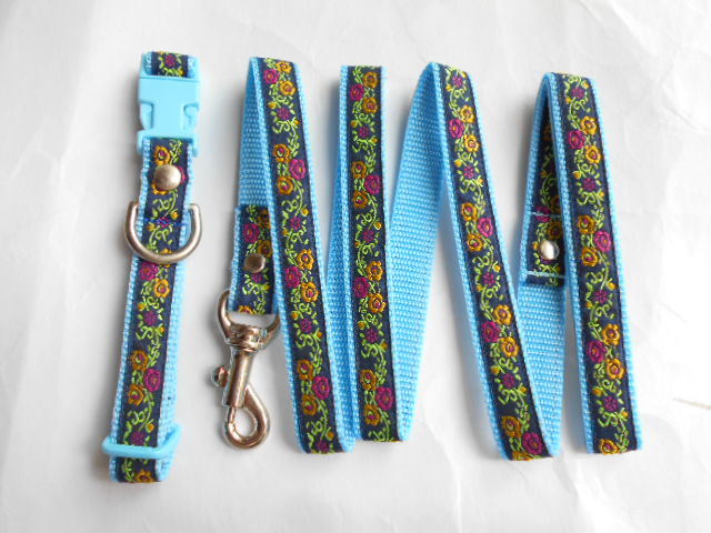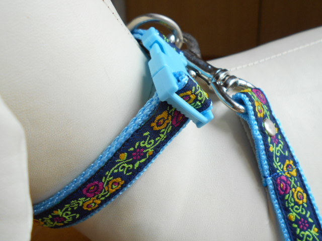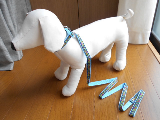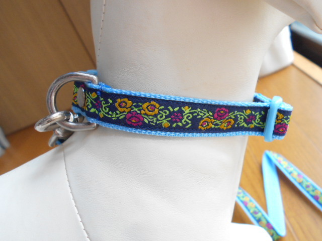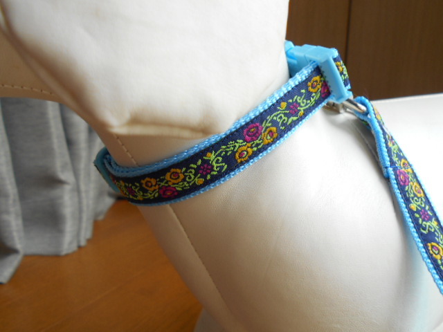 小型犬★ハンドメイド☆リード&カラーセット チロリアン ネイビー×水色 ~10kg