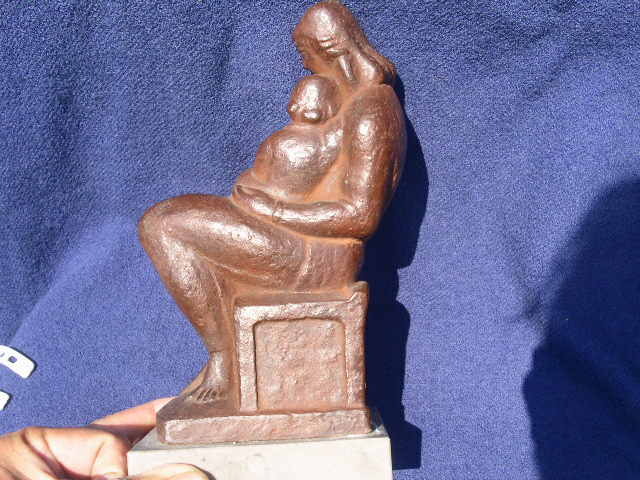 商品説明レトロな淀井敏夫作の ブロンズ製母子像です。