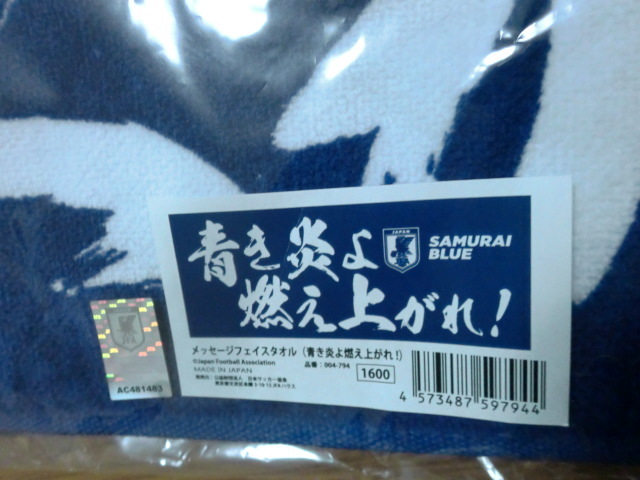 日本代表 侍ブルー 青き炎よ燃え上がれ! メッセージ フェイスタオル 未開封品