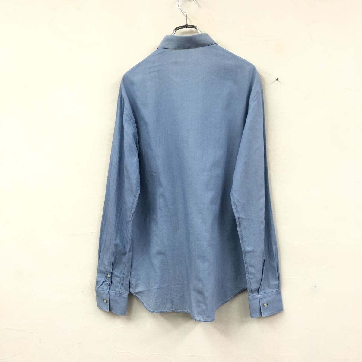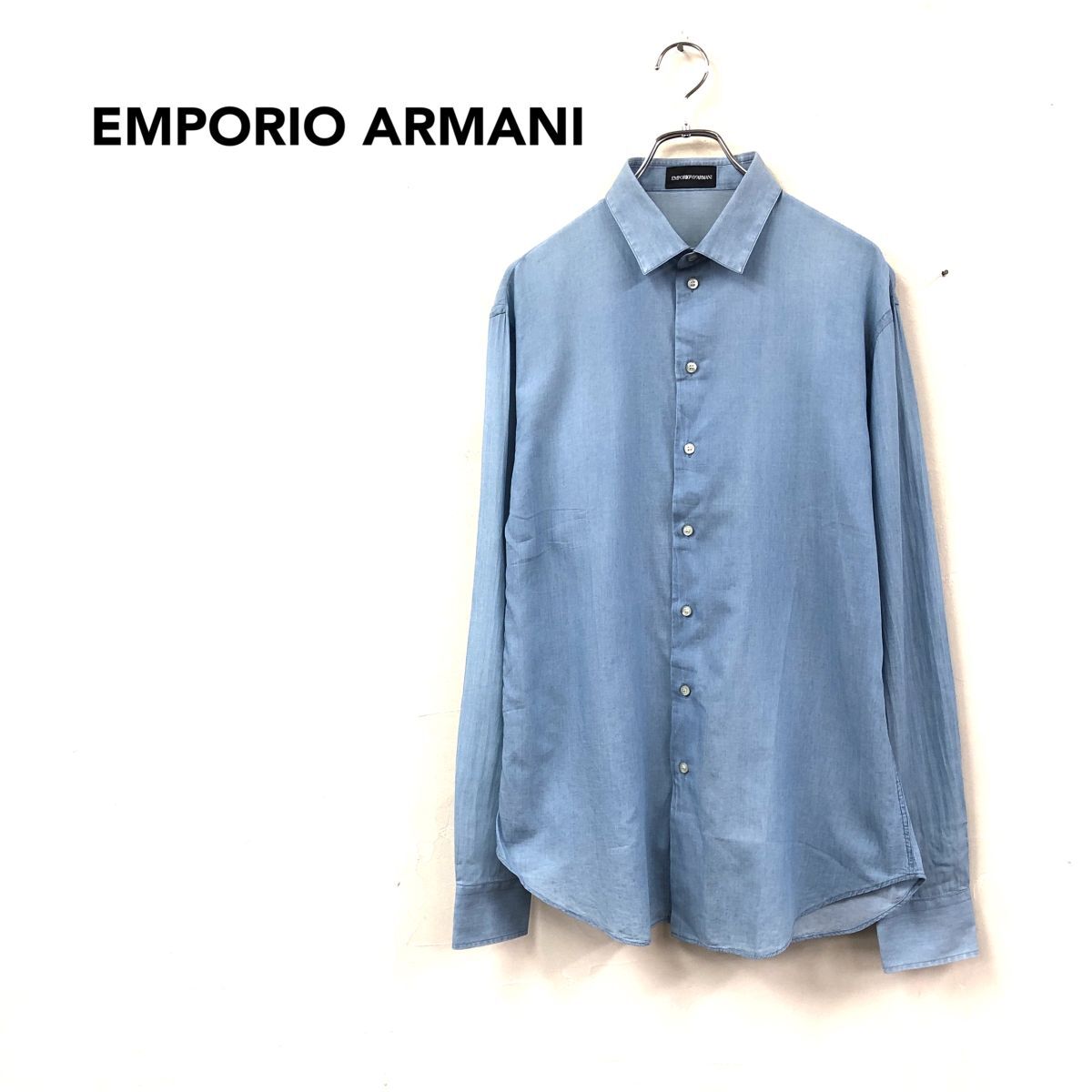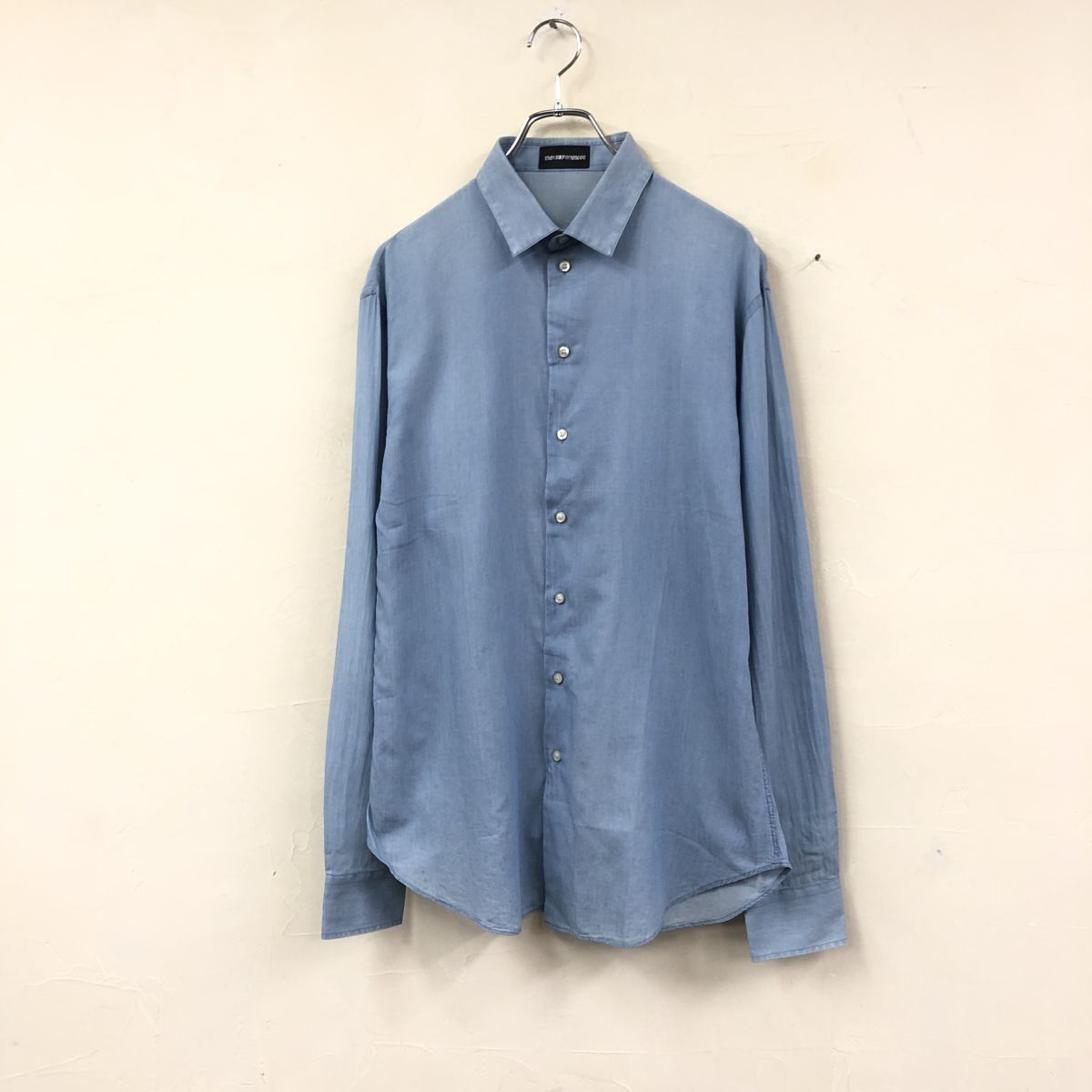2H1102-Y-N◆EMPORIO ARMANI エンポリオアルマーニ 長袖シャツ 無地 ラウンドヘム メンズ 紳士 カジュアル ◆sizeM ブルー 綿