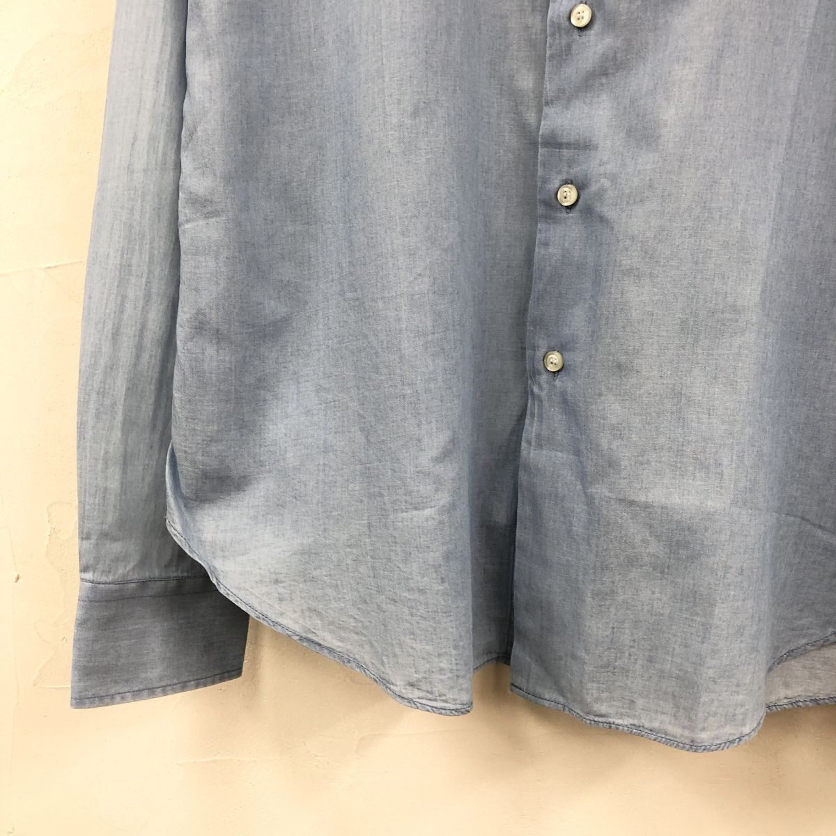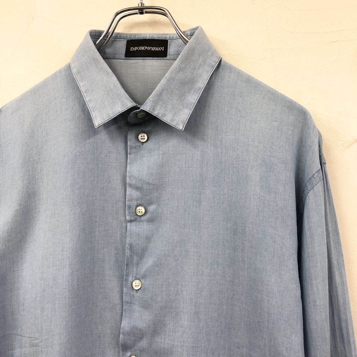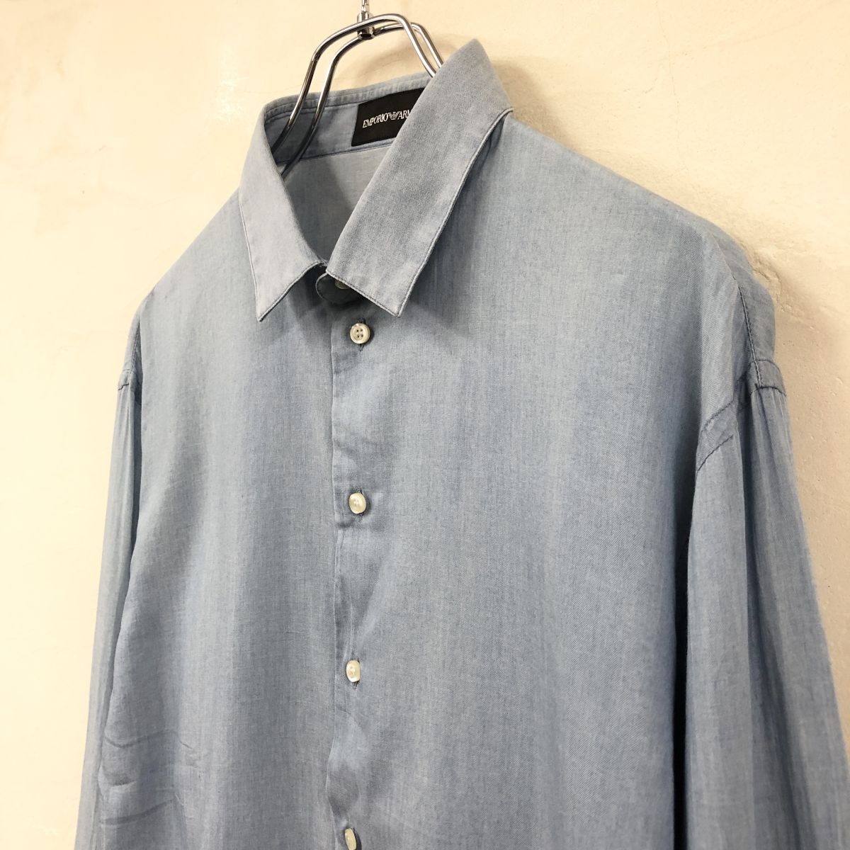 2H1102-Y-N◆EMPORIO ARMANI エンポリオアルマーニ 長袖シャツ 無地 ラウンドヘム メンズ 紳士 カジュアル ◆sizeM ブルー 綿