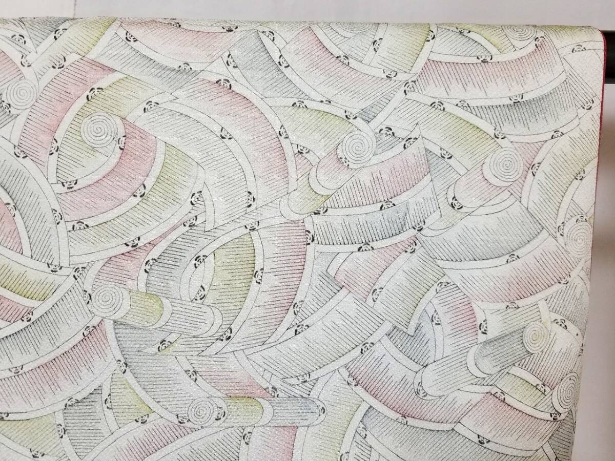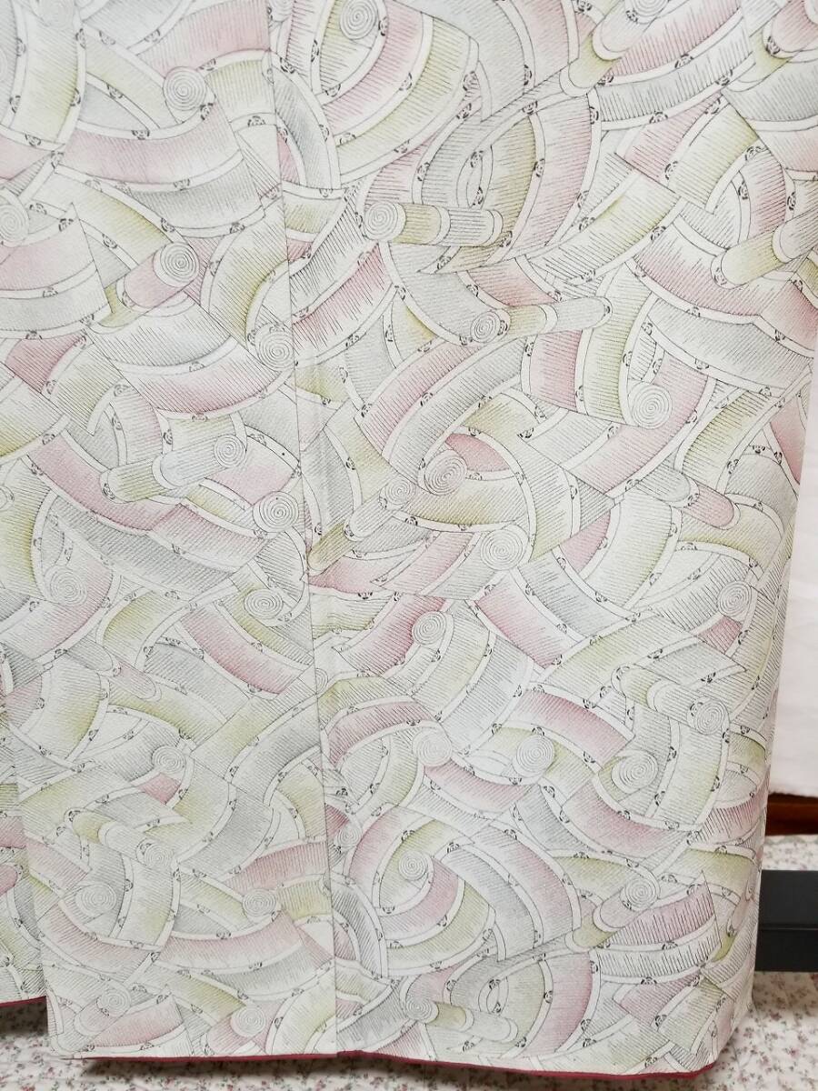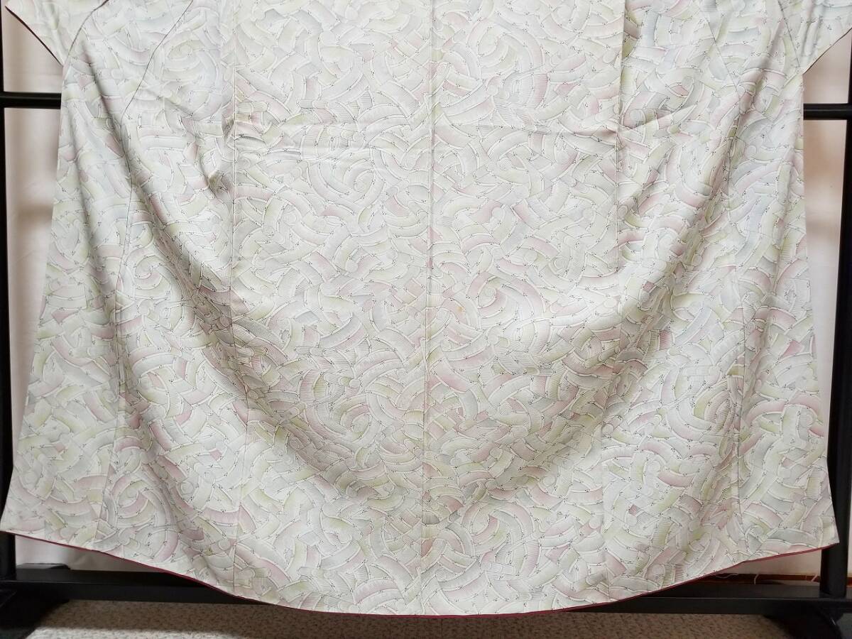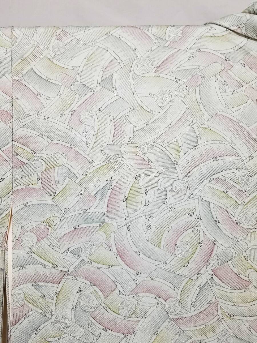 *手縫い仕立て品 *中古品 *未使用品 . *美品 {生地} ☆正絹 丹後 一越縮緬地 {重目地} ☆着物重さ 約 960g {お色と模様} ☆地色は灰白色地 ☆「黄み薄緑色」「灰赤紫色」「銀鼠色」色での手摺り染.暈し染の「巻物文様」 ☆巻物の中には.糸目加工の細線文様 {胴裏地} ☆正絹 羽二重地{薄ピンク色}**美品 {八掛地} ☆正絹 精華 縮緬地{小豆色*暈し染}**美品 ◎消費税は.お預かりしておりません◎ {寸法} 身丈 {肩山から裾まで} 約159cm {内あげ 前身 約13cm 後身 約16cm} 裄丈 約65cm {袖付け縫い代 袖側 約3.5cm 身側 約2cm} 袖丈 約49cm 袖幅 約32cm 前幅 約24.5cm 後幅 約30cm *広衿{スナップ付き} ◎t6227jp 桐輪 「呉服の桐正」でも色々と出品しております** (発送方法) ●大阪から ゆうぱっく発送 80サイズ{補償あり}**おてがる配送 {注意事項} (注意事項 必ずお読みください!) ★基本的に土、日、祝日、ゴールデンウィーク、お盆、年末年始はお休みさせて頂いておりますので、ご連絡が遅れる場合もございますので、ご了承ください。 ★どうぞ自己紹介欄も、是非御覧になって下さいませ。 ★落札後にヤフーから届くメールに、メッセージを記載しておりますので、そちらも必ずご覧下さいませ。 ●当方、ストア出品ではなく、一日中パソコンに向かっておらず、ご連絡は夜になる事が多いです。その点御理解の上、ご入札下さい。 ●お急ぎの場合など、到着希望の日にちが特に近い場合、ご要望にお答えできかねる場合もございます。 もちろん、出来る限り、早急に対応はさせて頂きますが、その点は、何卒ご了承下さいませ。 入札前に、発送が間に合うかご質問頂けるとありがたいです ★★基本的に返品、クレームはお受け致しておりませんが、万が一、商品に不都合(大幅な寸法間違い 記載以外の着用不可能な位の、大きなシミ、傷みなどの見落とし)などがございました場合、まず、取引ナビにてご連絡下さいませ。 迅速に対応させて頂きます。 ただし ●商品がお客様の元に到着後、1週間以上経過したもの。 ●お客様側で加工など、手を加えた物。 ●お色目が、思っていたものと違っていた、または、思っていた感じと違っていた。 (画像はできるだけ実物に近い色で写るように努力していますが、素人の撮影ですので、どうしてもPCによって多少違ってくる事があります。 出来るだけ、分かりやすいように説明は入れさせて頂きます。分かりにくい場合、ご質問下さい。) 以上につきましては、対応出来ませんので、ご理解下さい。 ★複数商品の落札予定のある場合、ご連絡頂きましたら、1週間程でしたら、お取り置させて頂きます。 お気軽に、お申し出下さいませ。 ★送料は、1個で発送が無理な場合は、こちらよりご連絡させて頂きます。 | |||