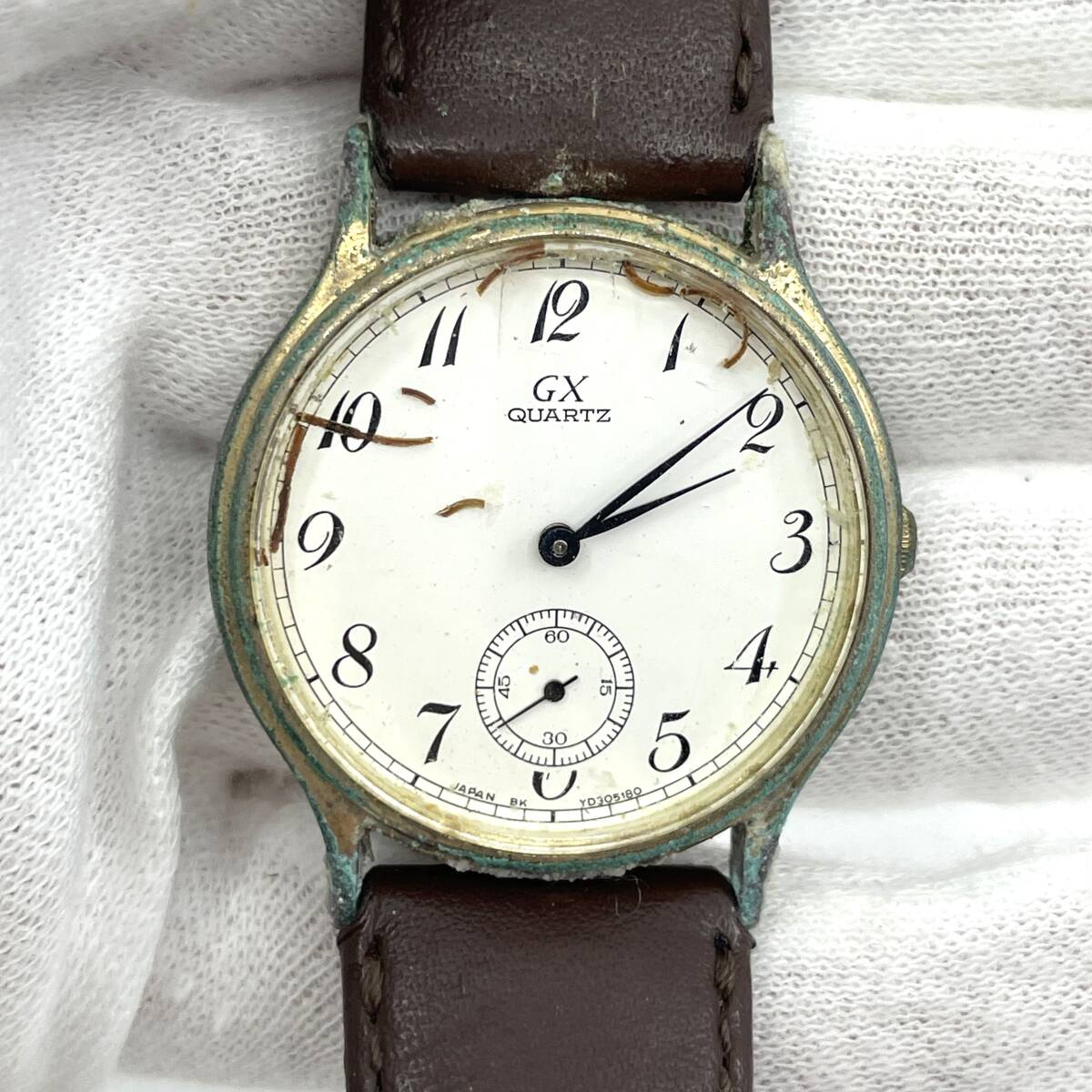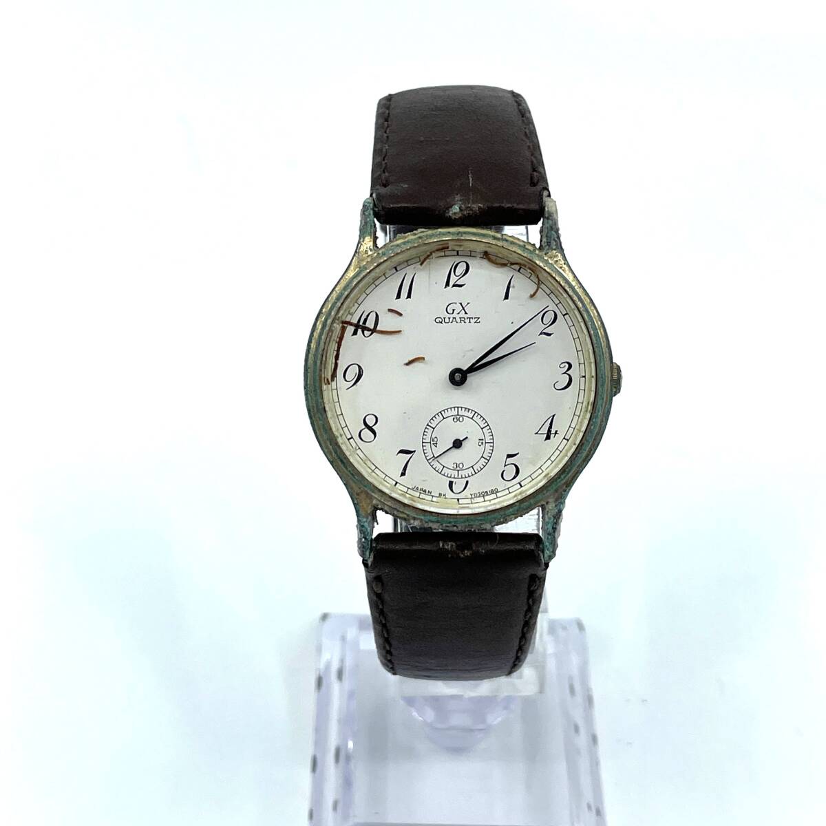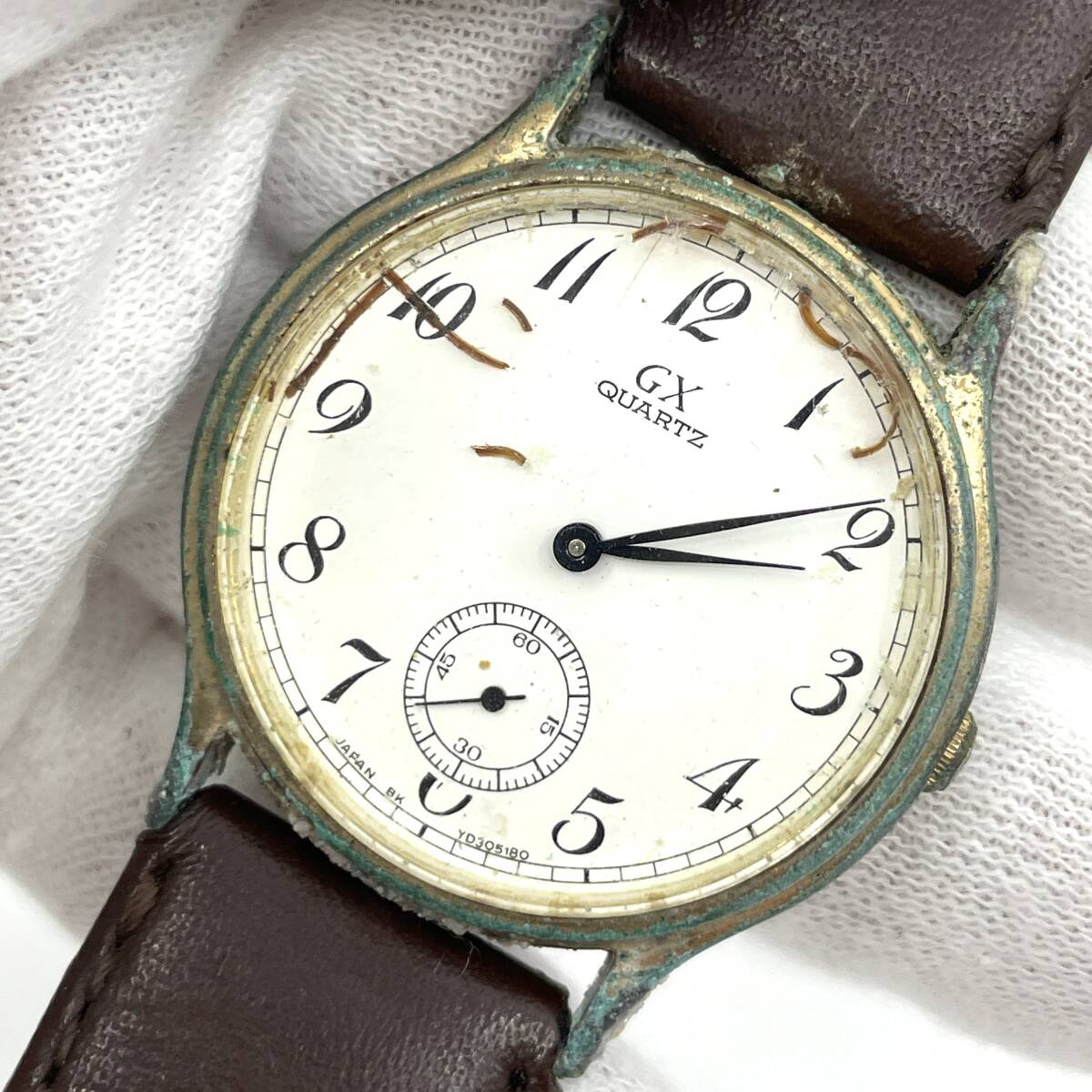 【動作未確認】GX クォーツ 腕時計 白文字盤 3針 スモセコ ラウンド レザー ボーイズサイズ YD3518-00
