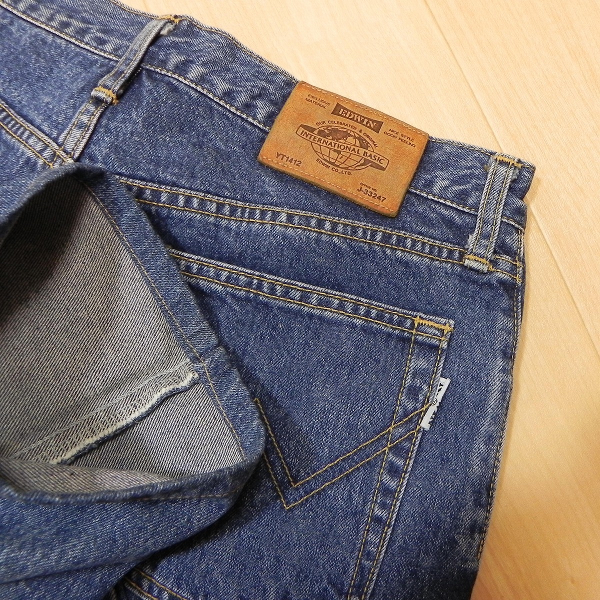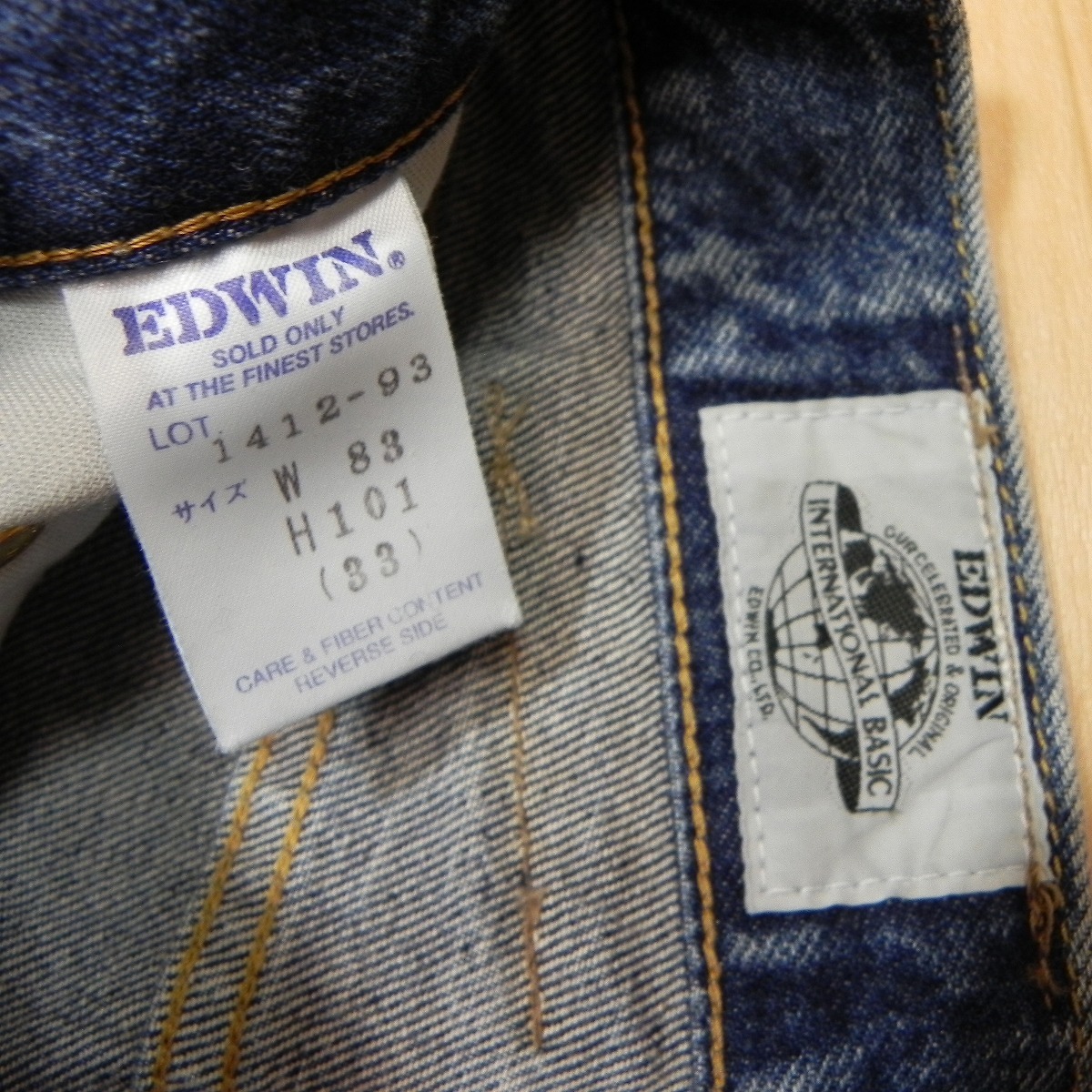 )641◎ 80s 90s 日本製 古着 EDWIN エドウィン 1412-93 ◆ デニム パンツ ジーンズ ストレート w33 ウォッシュ加工 即決 ◆