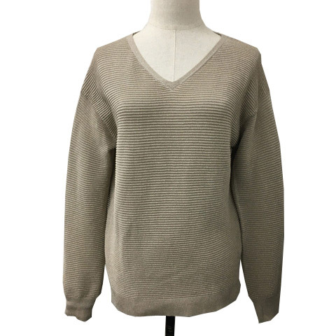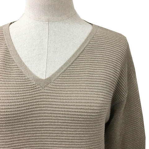 インディヴィ INDIVI セーター ニット Vネック プルオーバー ラメ 長袖 38 茶 ベージュ ブラウン レディース