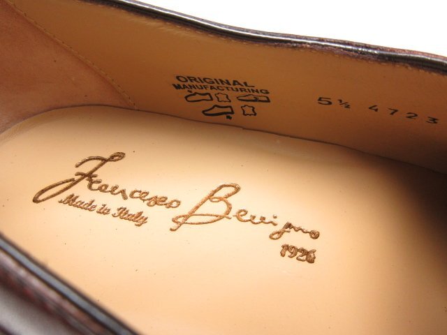 未使用品 【フランチェスコベニーニョ FRANCESCO BENIGNO】 G4723 キルト ベルト付き ドレスシューズ 靴 (メンズ) size5.5 茶 ◇18BEN103◇