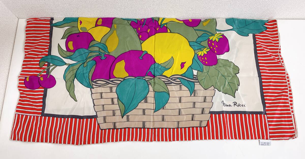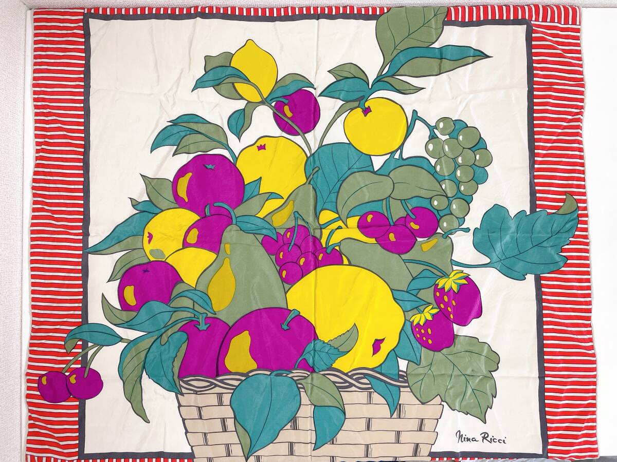 【NINA RICCI ニナリッチスカーフ★】フルーツバスケット/いちご/リンゴ/レモン/シルク/100%/お洒落/レディース/A77-491
