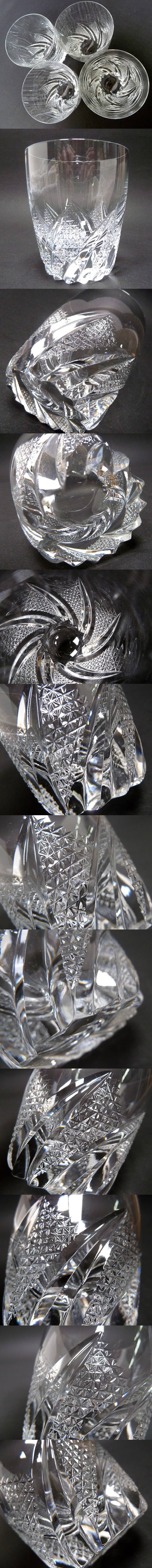 (☆BM)クラッシックレトロ/クリスタルガラス ロックグラス 4客 (0725-①)カットガラス230ml タンブラー コップ 酒器 マルチグラス