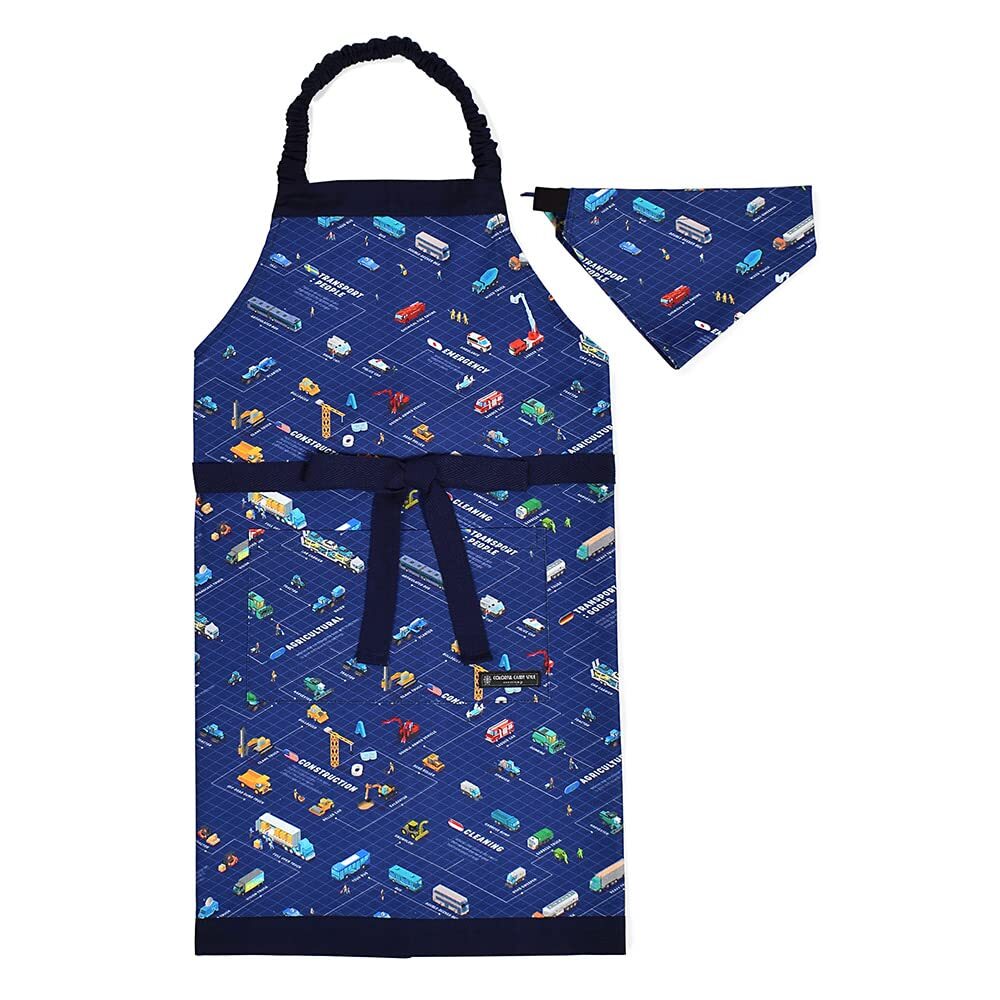 子どもエプロン 男の子 三角巾 セット 小学生 着脱簡単 クルマ社会の交通インフラ 130-160cm カラフルキャンディスタイル CBN125