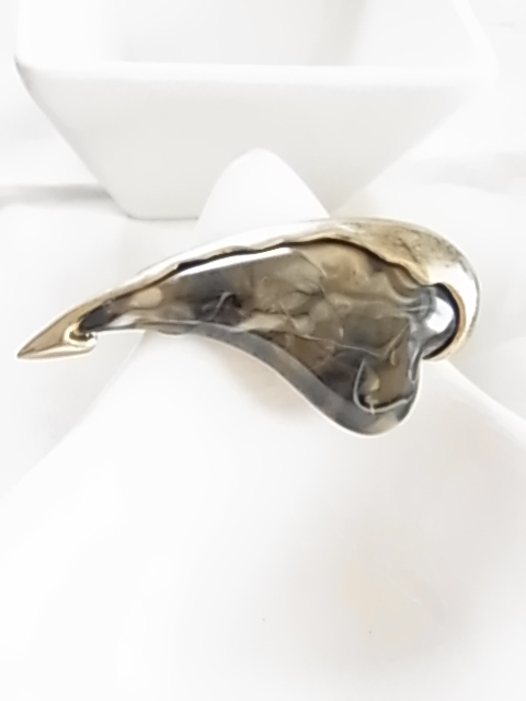 ビンテージ/ヴィンテージ 重厚感 素材品質不明 何かの鉱石のような感じ マーブル柄模様のよう 大き目存在感 昭和レトロのブローチ▽