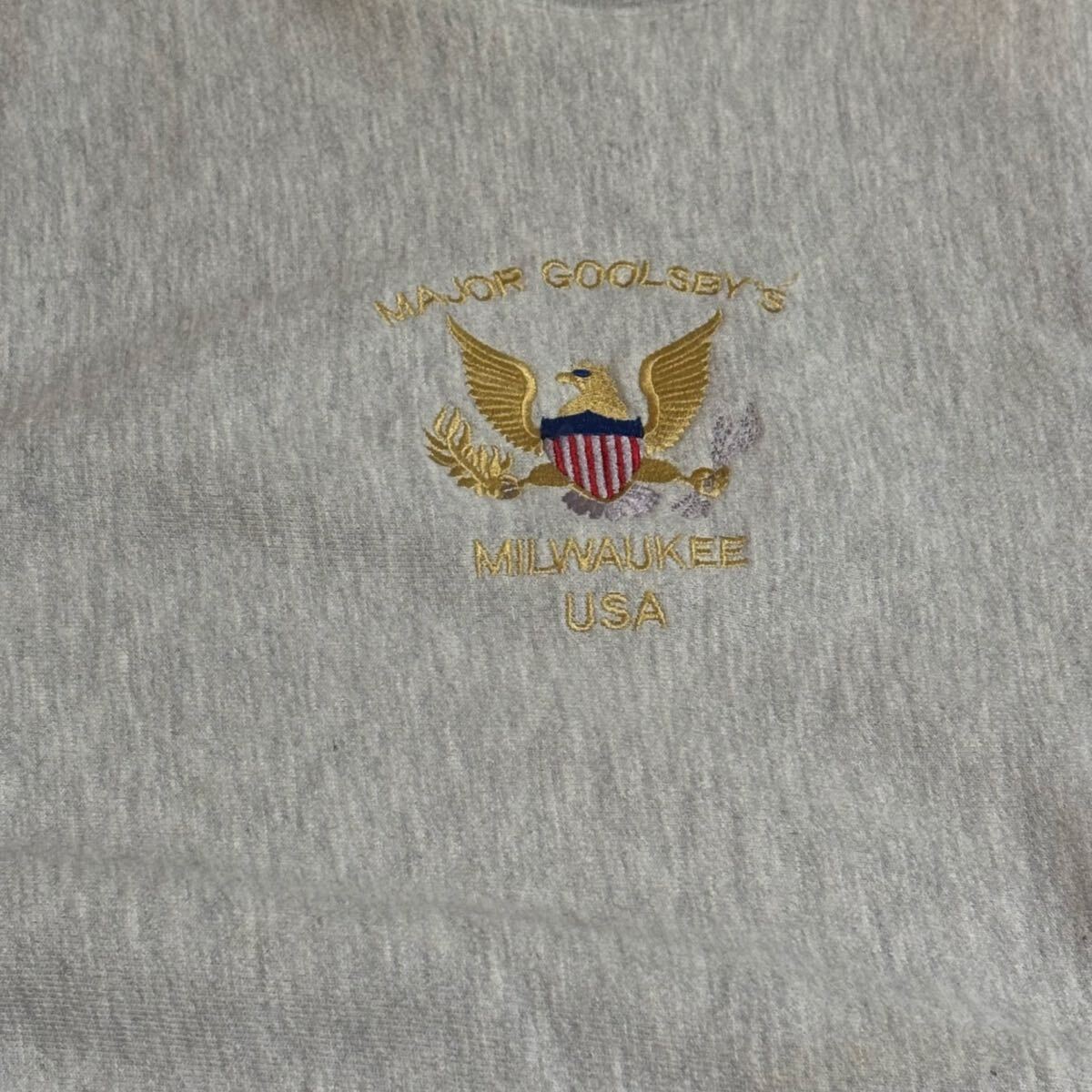 希少な1980年代 USA製、胸元に「MAJOR GOOLSEY’S MILWAUKEE USA」の刺繍入り、袖に目玉Cロゴ付きの1着。