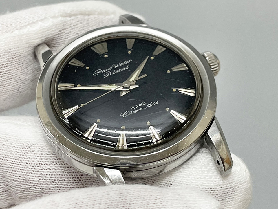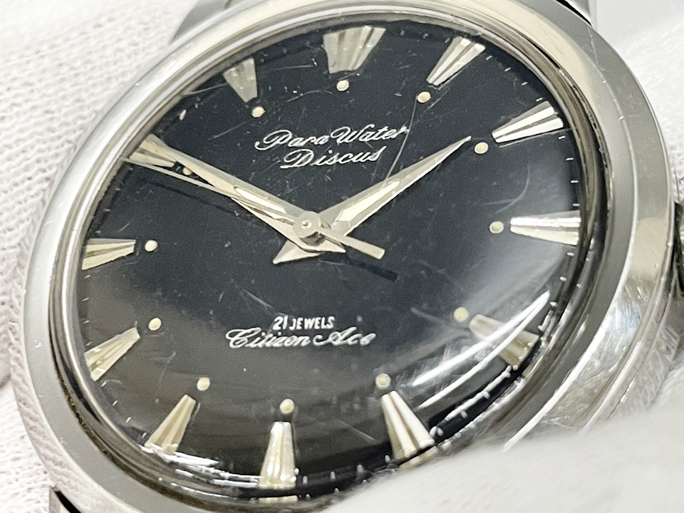『CITIZEN シチズン Ace PARAWATER エース パラウォーター 21石 ヴィンテージ 手巻き 稼働 黒文字盤 メンズ腕時計』です。