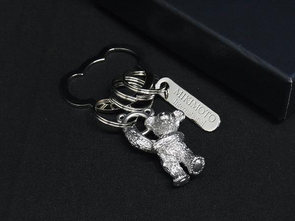 ■新品同様■ MIKIMOTO ミキモト ロゴプレート くま クマ ベアー テディベア キーリング キーホルダー チャーム シルバー系 DI1991